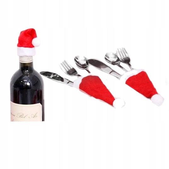 Мини-шапочки Санты на бутылку/столовые приборы, 10 шт.