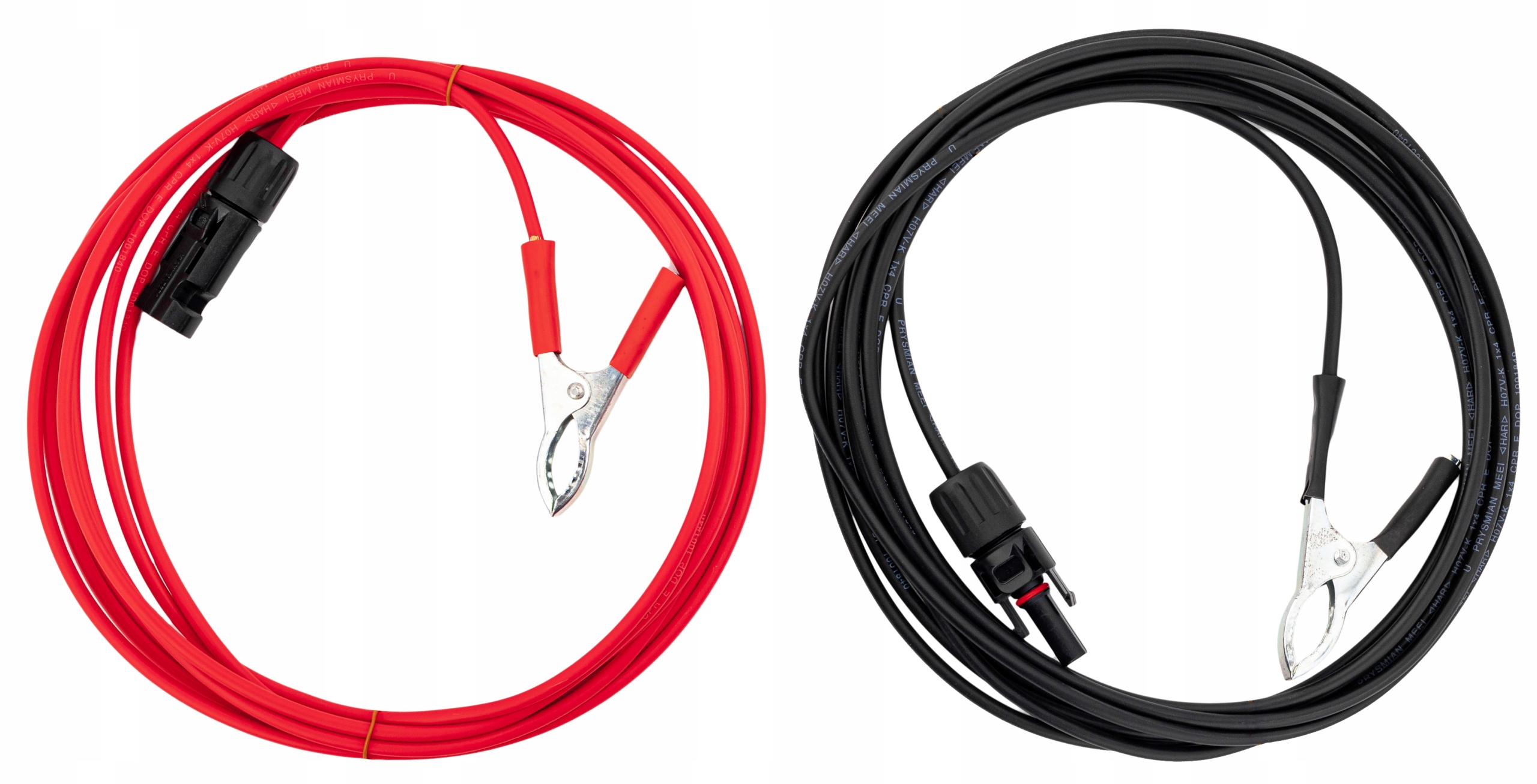В комплект входят 2 комплекта (2х5м красные, 2х5м черные) кабелей для подключения солнечных модулей к инвертору. Кабели позволяют перемещать модули на расстояние 5 м от инвертора.