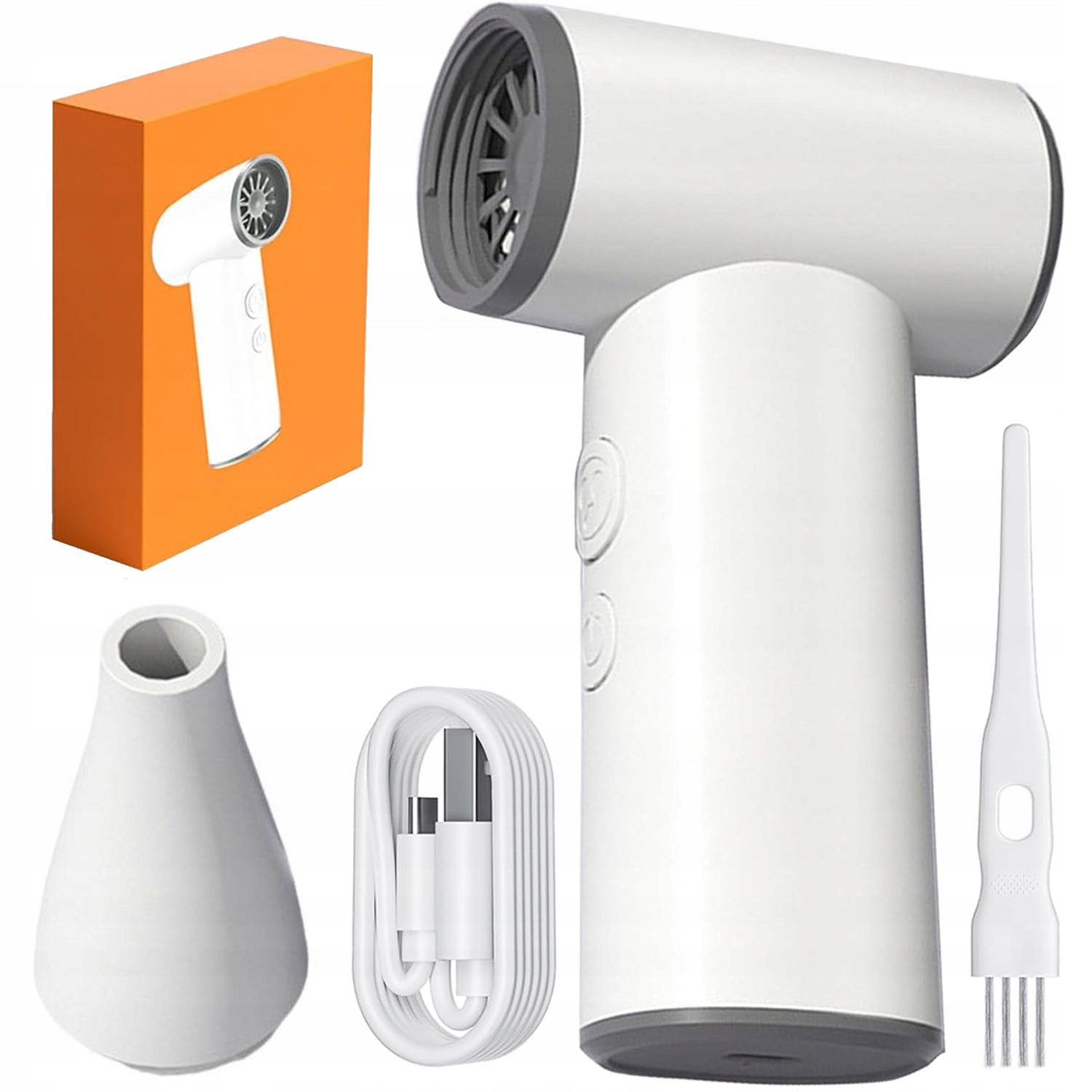 ✅Турбовентилятор с USB-аккумулятором и встроенным аккумулятором емкостью 3300 мАч, в комплекте щетка и кабель для зарядки - белый