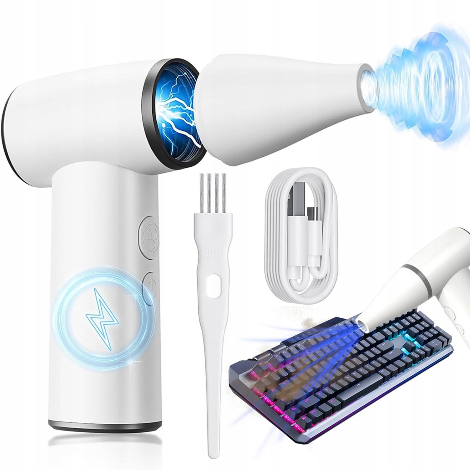🔅🔅Электрический воздуходувка с 4 режимами работы, заряжается через USB, для чистки клавиатур компьютеров и автомобилей. Мини-турбовентилятор для чистки автомобильного компьютера Type-C с быстрой зарядкой🔅🔅