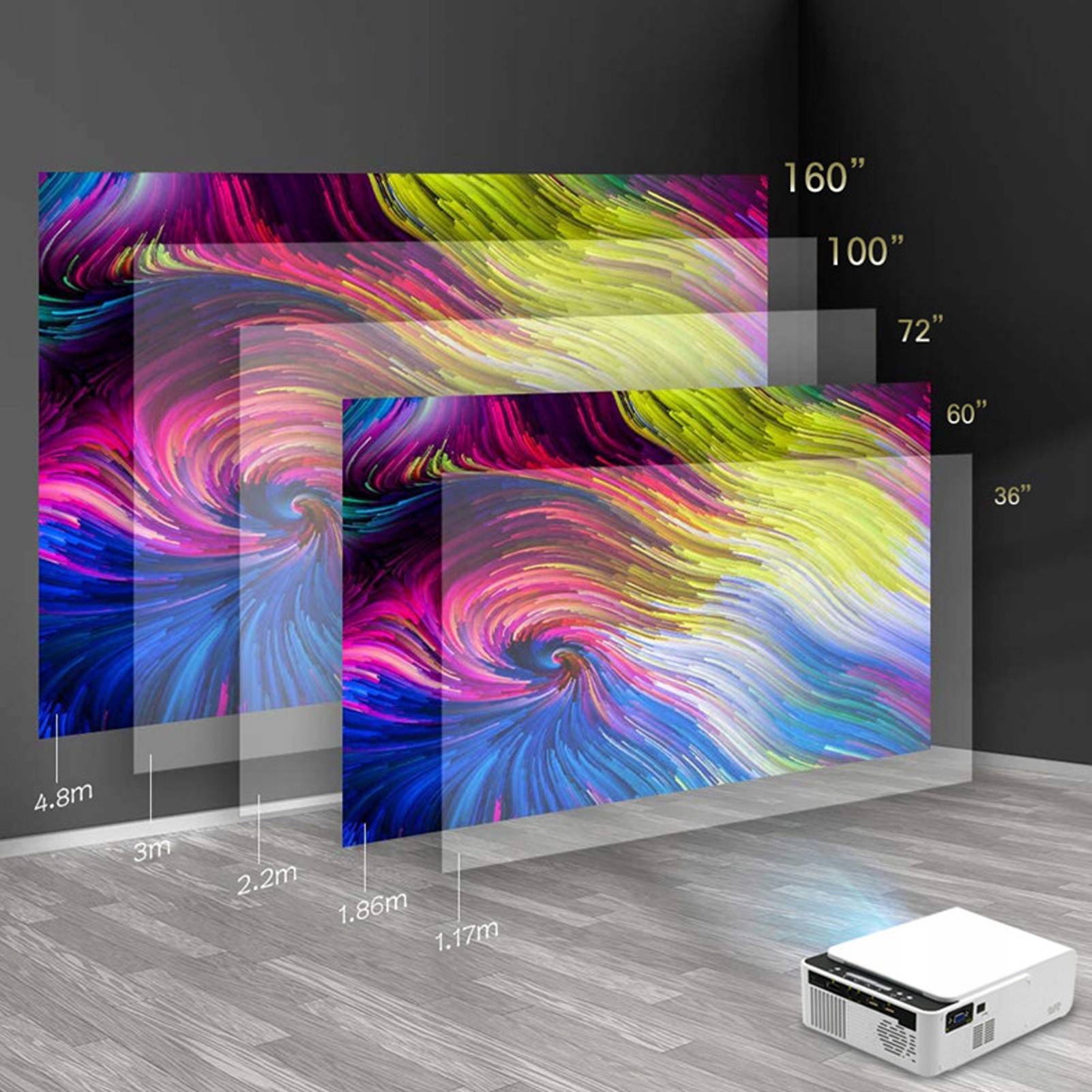 Размер проецирования: 30–170 дюймов