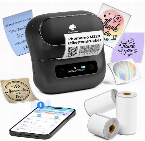Мини-термопринтер Phomemo M220 для самоклеящихся этикеток и наклеек 80 мм.