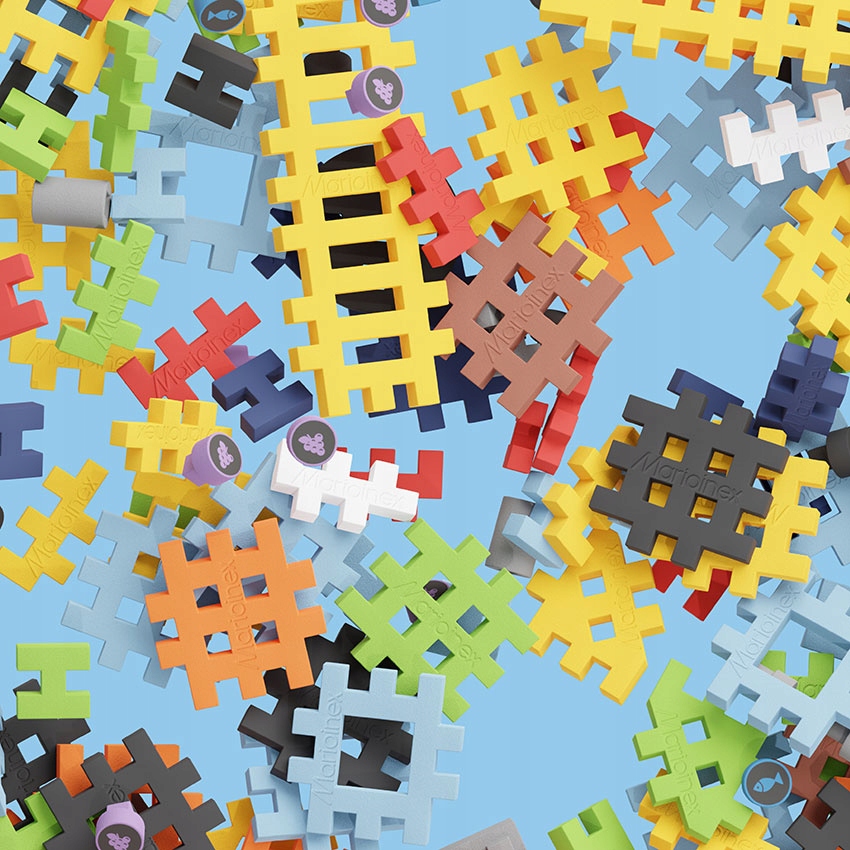 МИНИ-ВАФЛИ — это мягкие и инновационные кубики, которые на ощупь напоминают резиновые вафли. Их небольшой размер дает гораздо большую мобильность и новые возможности. В дополнение к классическим Мини-вафлям в предложение также входят дополнительные блоки, которые придают Мини-вафлям свежий, технический характер и расширяют творческие возможности.