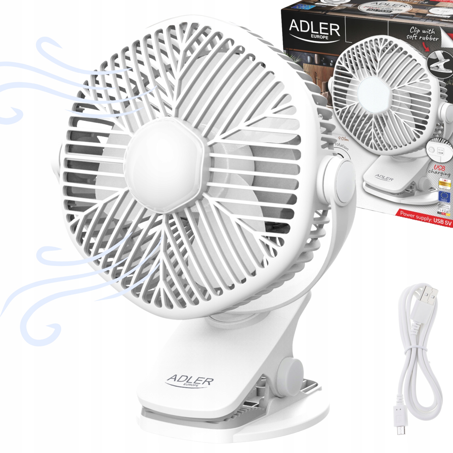 Adler Ad 7335 вентилятор с аккумулятором, светодиодным освещением и клипкой h1>