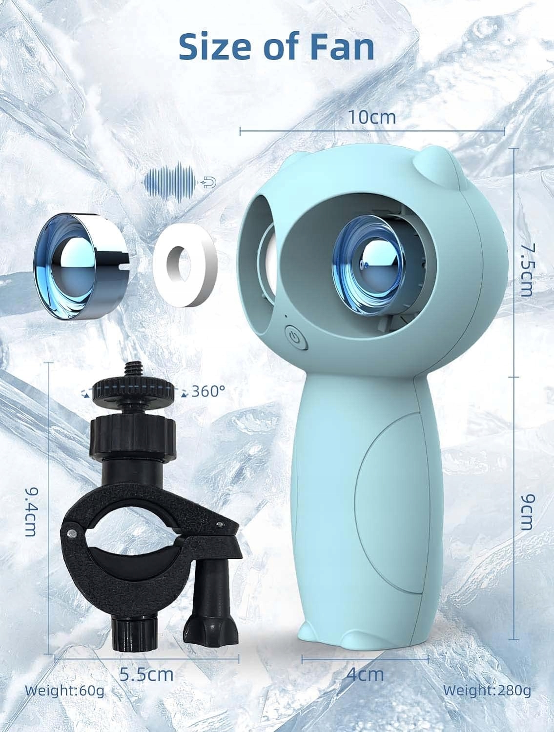 Многофункциональный вентилятор BF1 можно использовать как ручной, настольный вентилятор или прикрепить к коляске. Он легкий и помещается в рюкзак, идеально подходит для путешествий, походов, кемпинга и многого другого.