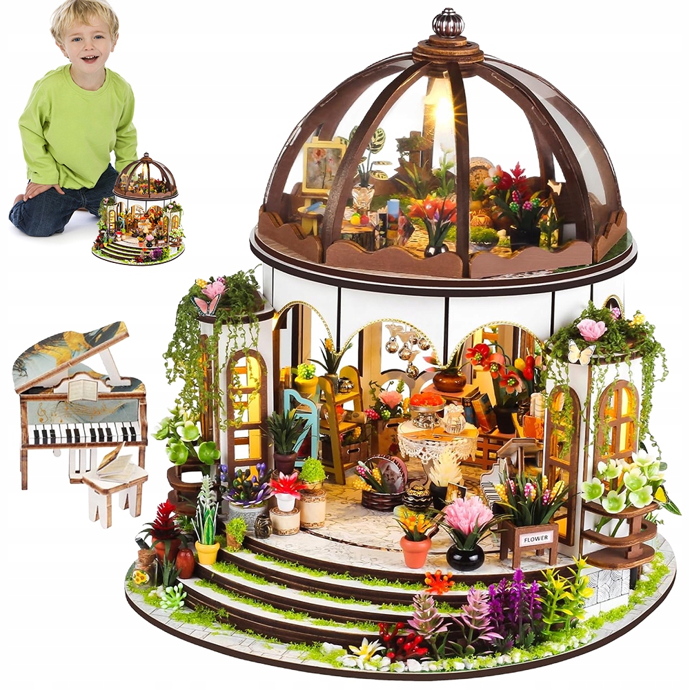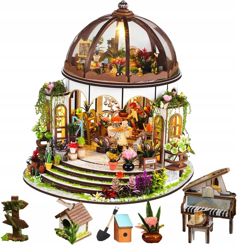 МИНИАТЮРНЫЙ ДОМ DIY КРАСОЧНАЯ ТЕПЛИЦА САД СОЛНЦЕ ЦВЕТЫ ПИАНО 3D