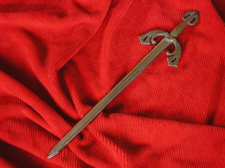 Представьте, как эта прекрасная копия украсит ваш интерьер. адаптировано для заточки. Лезвие сделано из цинка и алюминиевого сплава. CID в провинции Бургос, скончался 10 июля 1099 года в Валенсии), называемый смелым сидром (испанский El Cid Campeador), My Cyd (Mio CID) или Cyd (El CID, араб. Валенсия. Родригес. В молодости он получил награды, и великолепие обычно принадлежало вышеупомянутому. Это принесло ему ненависть. Вместе с Санчесом Сидом он участвовал в войне против Таифы Саракуст (Тайф де Саракст, сегодняшняя Сарагосса) в 1063 году. Его отличал храбрость и мастерство Найта, поэтому Санчо сделал его одним из самых важных командиров. Позднее борьбу за господство в Королевстве Кастилии, которое Санчо сражалось против своих братьев и сестер, Сид был ценным командиром, который смог опрокинуть весы победы в пользу своего феодала. Но в 1072 году Санчо стал жертвой коварной засады и умер от рук одного из солдат одной из его сестер. Доминирование было выиграно еще одним братьев Альфонс, и сначала он не ненавидел Сиду, что еще он дал ему руку королевского двоюродного брата Джимена, на которой он женился в 1074 году. Через некоторое время Альфонс, вероятно, из -за суда, обвинил Сид в растрате серьезной суммы денег и ценностей, а затем изгнал его из королевства в 1076 году. С тех пор CYD стал огромным рыцарем для различных мелких правителей или феодалов, иногда сражающихся самостоятельно. Он случайно сразился и на стороне христиан и мавров. Находясь в угнетении, Альфонс снова вызвал помощи, что он сделал, но с неудачным поворотом несчастных случаев он не смог добраться до короля. Это вызвало тюремное заключение его жены и дочерей в 1081 году, а также конфискацию товаров и восстановление для изгнания. Сид снова взял на себя свое рыцарское мастерство. Ему приписывают значительные достоинства в отрицании мавров с иберийского полуострова христианами. Вместе с правителями Арагона и Сарагосса он вступил в войну с арабскими силами Альмевида. В 1094 году он завоевал Валенсию, избив армию Альморавида в Куарте де Поллет [1]. Он управлял Валенсией до своей смерти в 1099 году. После его смерти его жена Джимена вступила во владение [1], но он держал ее только до 1102 года, когда Альфонс VI, король Леона, приобрел власть. В рассказах было сказано, что он никогда не проигрывал битву. Его персонаж стал прототипом средневековой работы песни Рыцаря Эпоса о Сиде. Кроме того, он был героем многочисленных народных баллад и фр -драмы