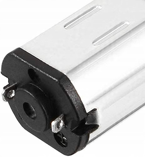 Небольшой моторчик с металлической шестерней с D-образным валом диаметром 3 мм и длиной ок. Рекомендуемое рабочее напряжение двигателя составляет 12 В, при этом напряжении он достигает скорости 1000 об/мин и максимального крутящего момента 0,13 кг*см, потребляя ток от 0,07 А до 0,82 А.