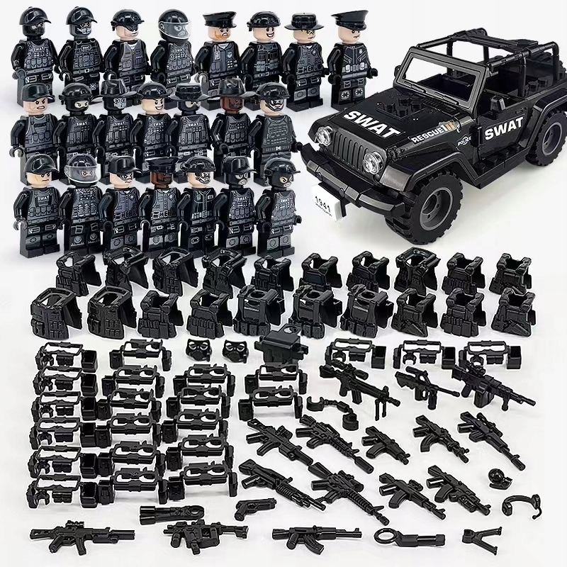 МІНІФІГУРКИ СОЛДАТІВ СПЕЦНАЗУ ПОЛІЦІЇ 22 ШТ + ЗБРОЯ + ДЖИП