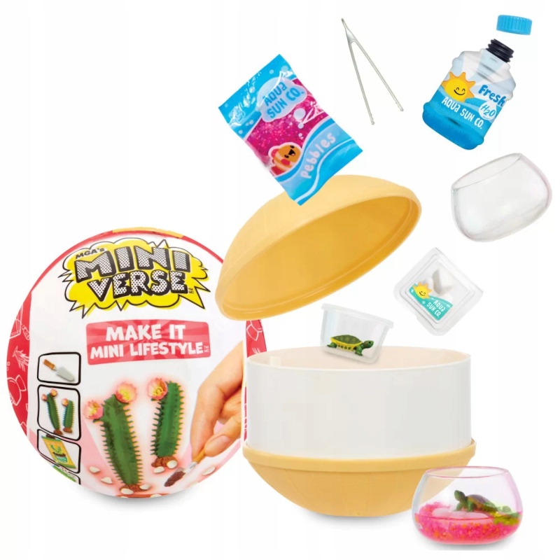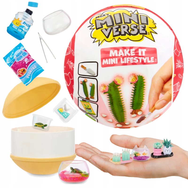Шар-сюрприз содержит все необходимые элементы для изготовления миниатюрных декоративных элементов, таких как растения, цветочные композиции, аквариумы с рыбками, светильники и многое другое!