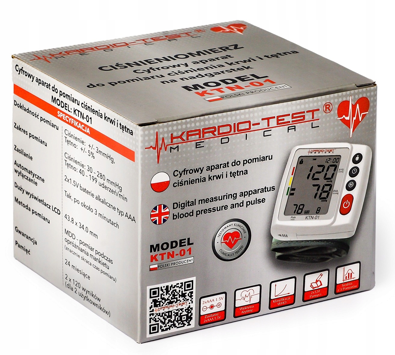 Электронный монитор артериального давления Kardio-test Medical KTN-01 обеспечивает самую высокую клиническую точность для измерения артериального давления и частоты сердечных сокращений, это медицинское устройство , приспособленное для использования в здравоохранении .