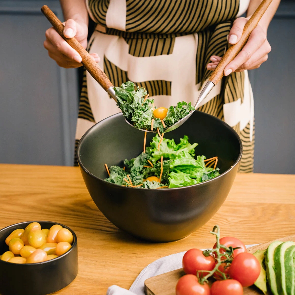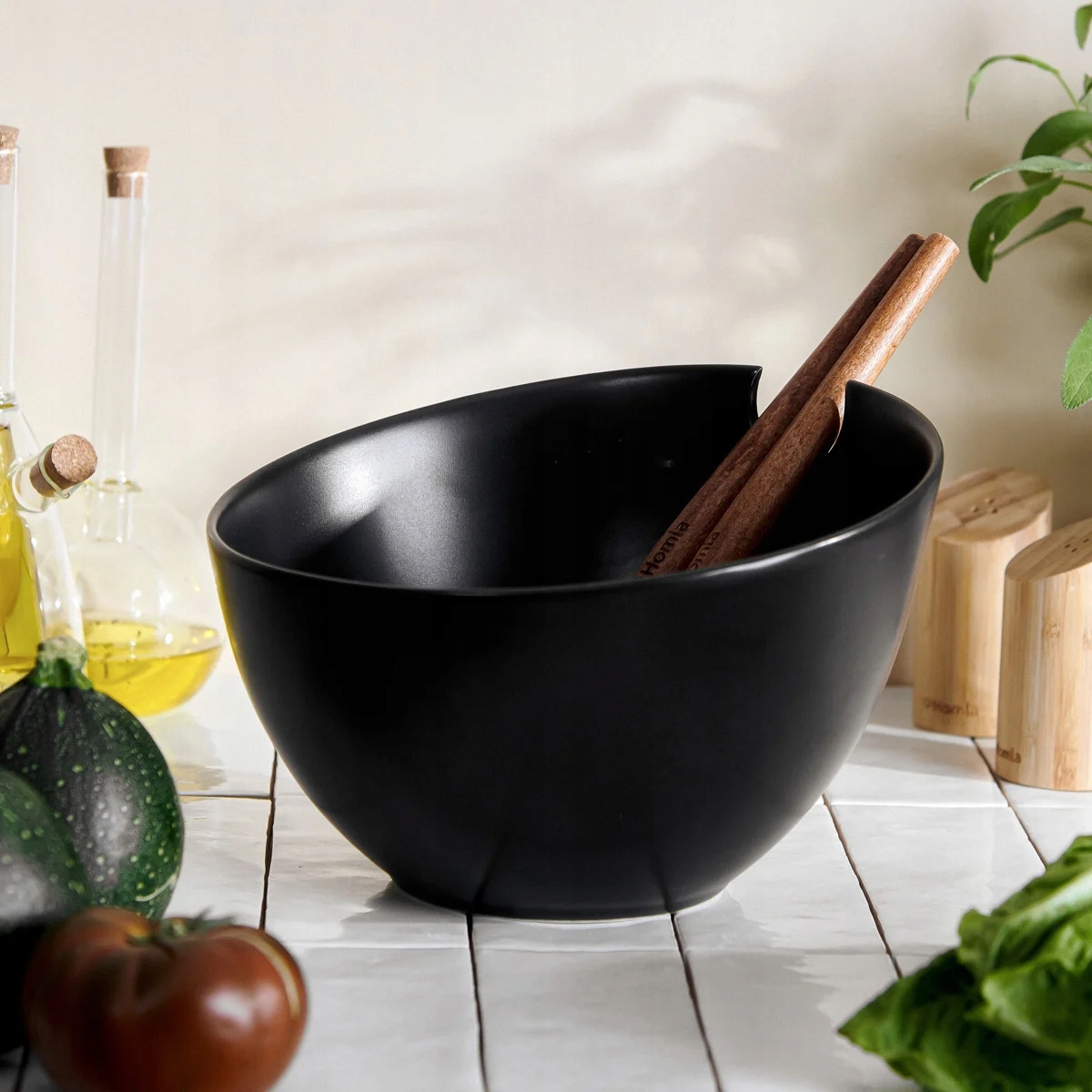 Misa MOOKA do sałat ceramiczna z przyborami czarna 24 cm HOMLA
