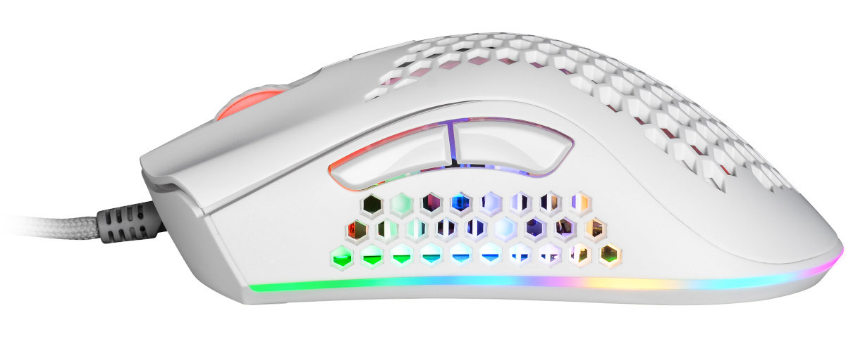 Чтобы подчеркнуть игровой характер мыши MAD DOG GM750W, в ней используется RGB-подсветка во всей цветовой гамме. Подсветка размещена не только на тыльной стороне мыши, но и на логотипе и скролле, а ее ажурный дизайн только усиливает потрясающий эффект. Благодаря специальному программному обеспечению вы сможете полностью управлять подсветкой и настраивать ее так, чтобы она идеально сочеталась с остальным игровым «набором».