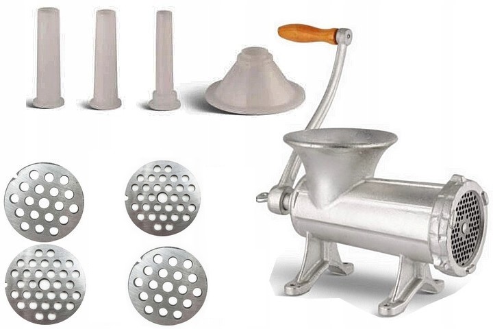 - БЛАГОДАРЯ ПРИСОЕДИНЕННЫМ ВОРОНКАМ И НАПРАВЛЯЮЩИМ РАЗЛИЧНЫМ ДИАМЕТРУ, МАШИНА ИДЕАЛЬНО ПОДХОДИТ ДЛЯ ПРОИЗВОДСТВА КОЛБАСЫ В ДОМАШНИХ УСЛОВИЯХ.