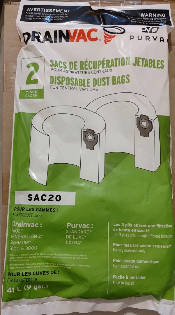 Мешки SAC20 для центрального пылесоса PRO2, G2, Summum