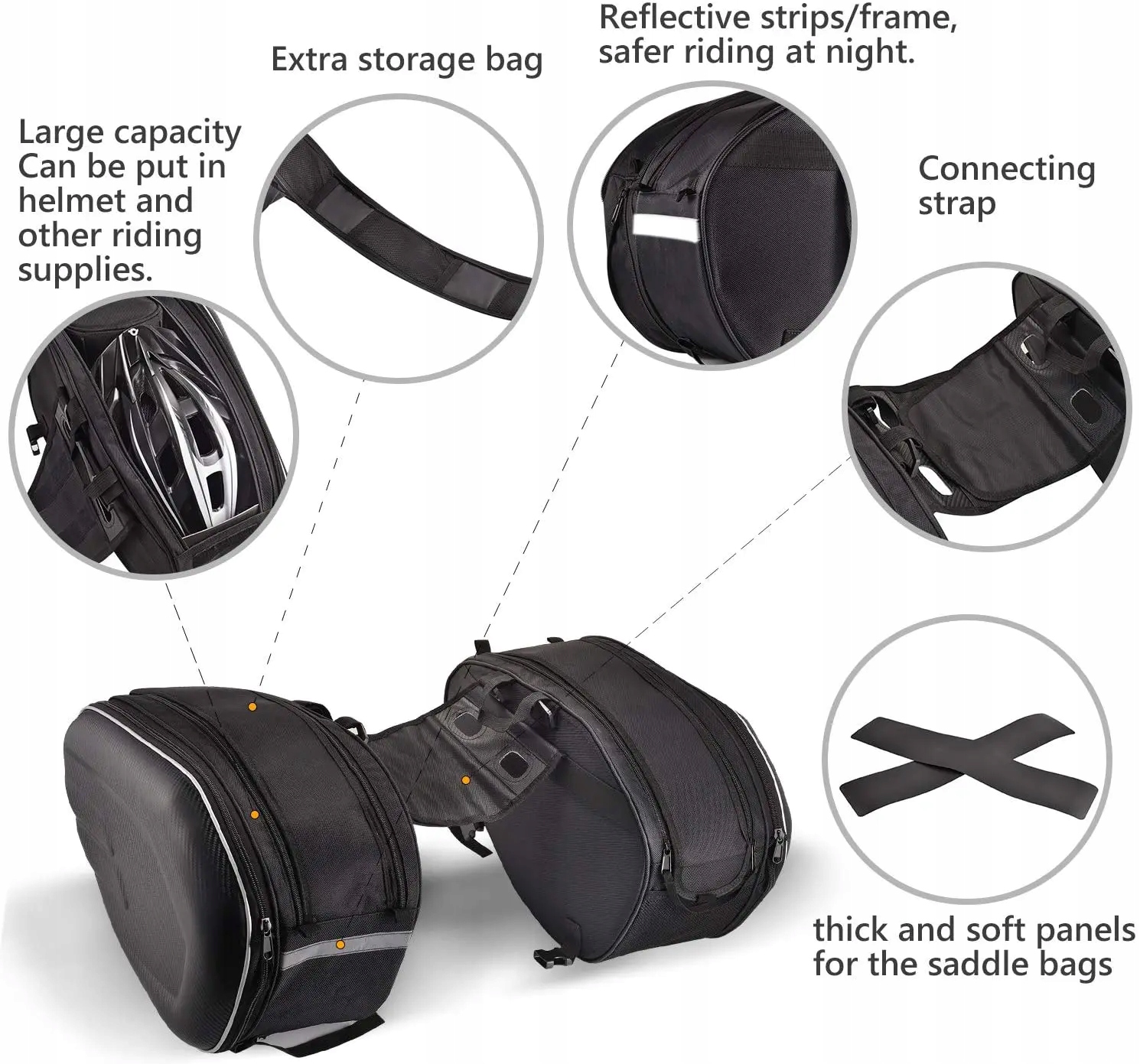 боковые сумки Японский бренд Komine - универсальный продукт, который может быть установлен для любого мотоцикла. Проходы сделаны очень твердо с вниманием к деталям. Оба имеют возможность увеличить емкость (например, шлем, например, может соответствовать)