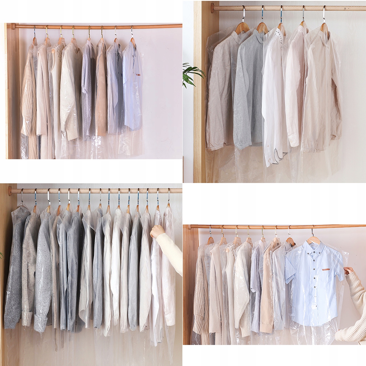 Этот предмет изготовлен из пластика и защищает вашу одежду от грязи, пыли и моли, а также позволяет ей дышать. правильно. для домашнего использования или химчистки. Он водонепроницаем и прост в использовании. Просто носите и храните свою одежду в этих специально разработанных чехлах для одежды.