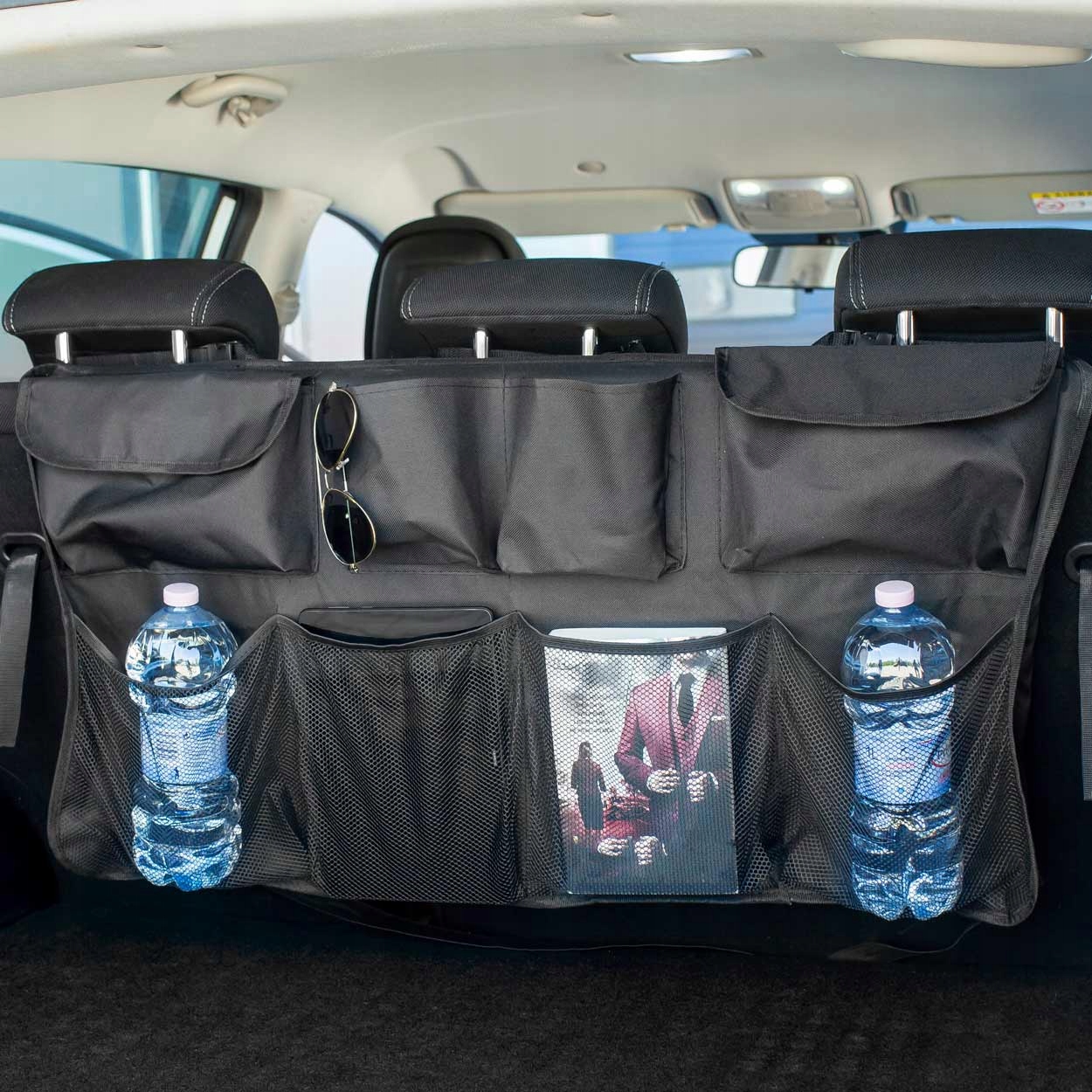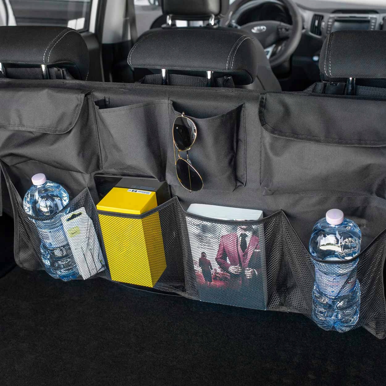 Организатор для автомобильного ствола b>, установленного на спинах в багажнике автомобиля, благодаря тому, что вы позаботитесь о заказе в своем автомобиле. контролировать беспорядок и летающие покупки.