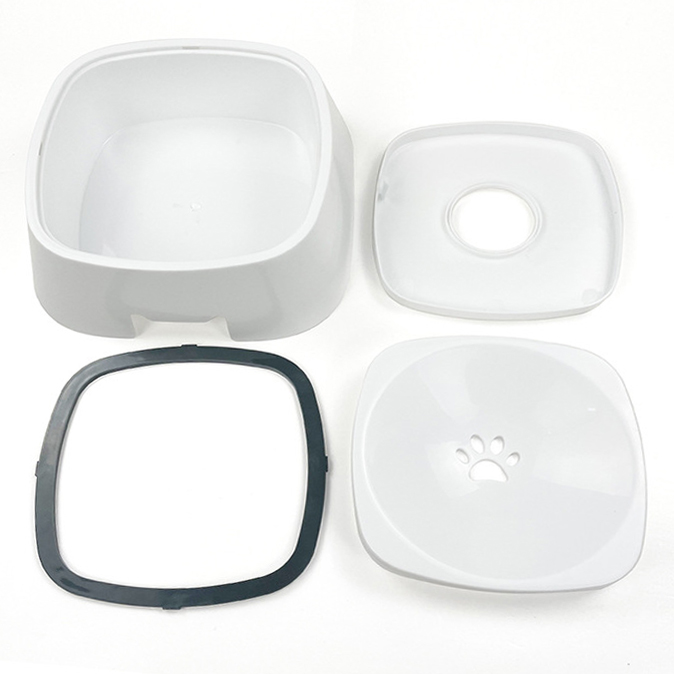 Плавающий диск плавает на поверхности воды в наполненной чаше и остаетсязакрепленным крышкой, расположенной на верхних краях чаши. Под давлением морды или языка собаки диск опускается, пропуская небольшое количество воды через профилированные отверстия. Когда собака перестает пить, вода выталкивает диск обратно на поверхность. Такая конструкция сводит к минимуму контакт морды, ушей и подбородка животного с водой, помогая ему оставаться чистым.
