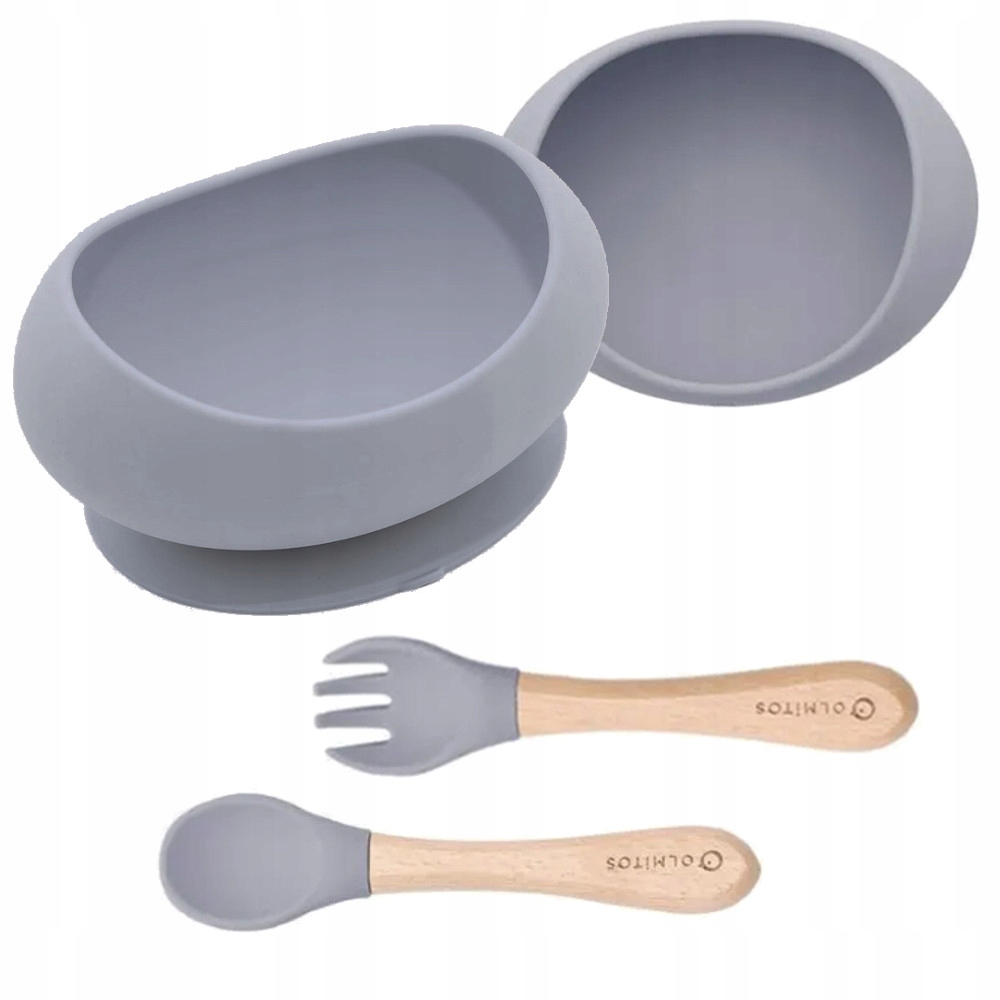СИЛИКОНОВАЯ ЧАШКА OLMITOS С ПРИСОСКОЙ, ЛОЖКОЙ И ВИЛКОЙ 6 м+