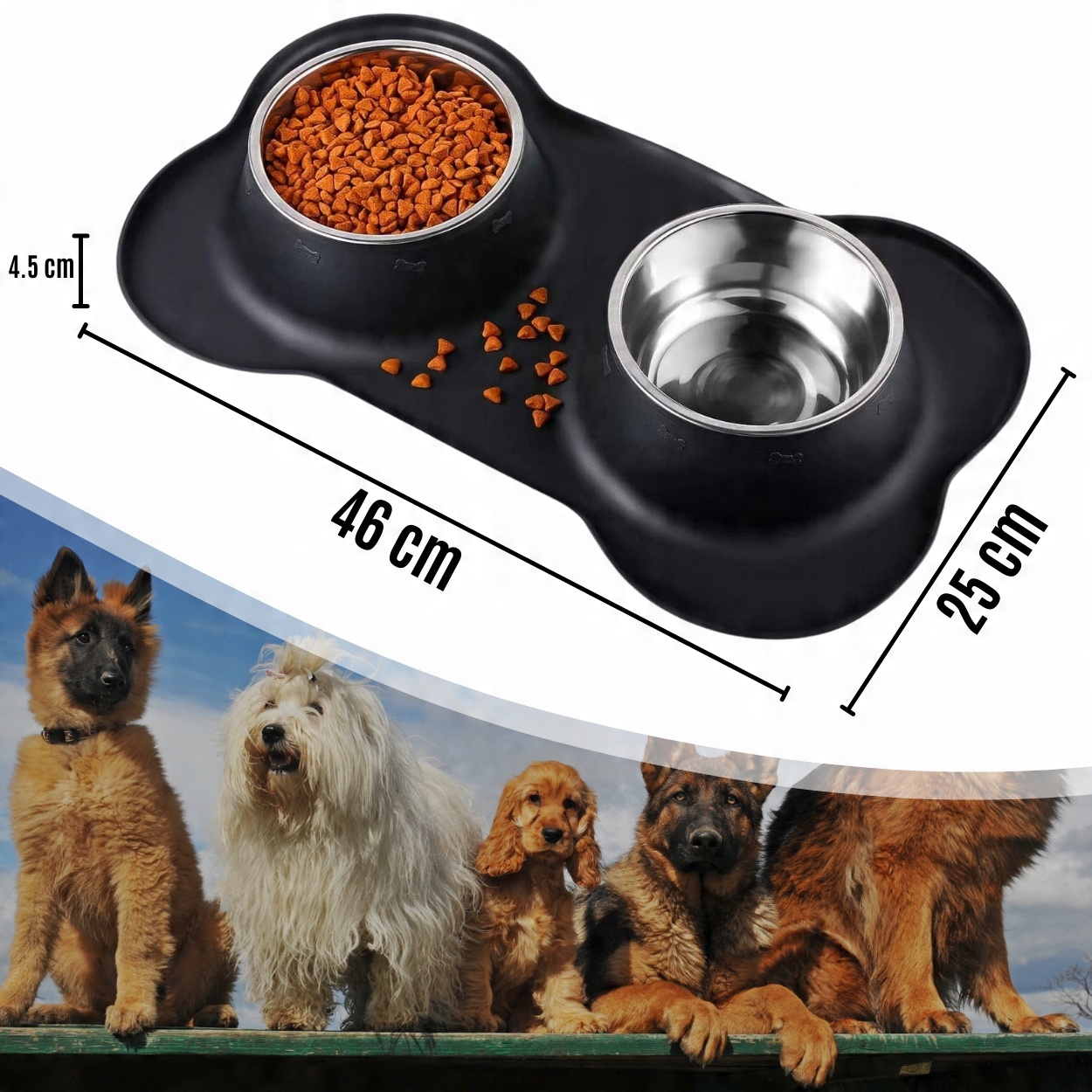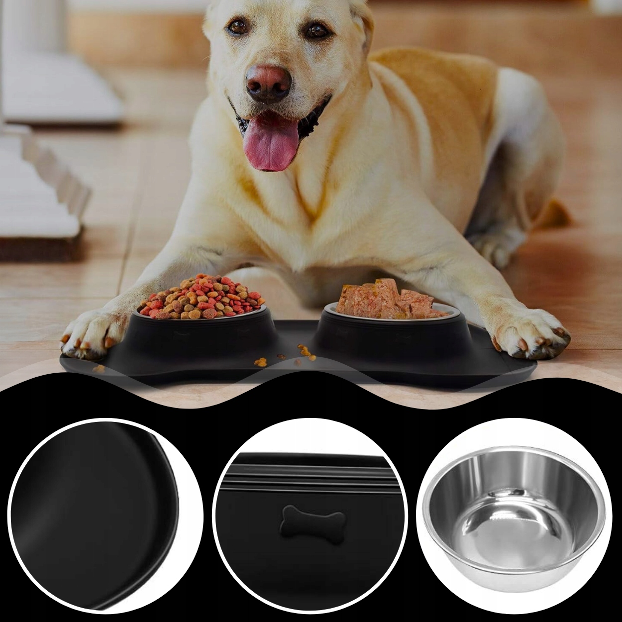 МИШКА ДВОЙНАЯ ДЛЯ СОБАК И КОШКИ, ПРОТИВОСКОЛЬЗЯЩАЯ + ПОДКЛАДКА ДЛЯ МИСКИ 2x450 мл
