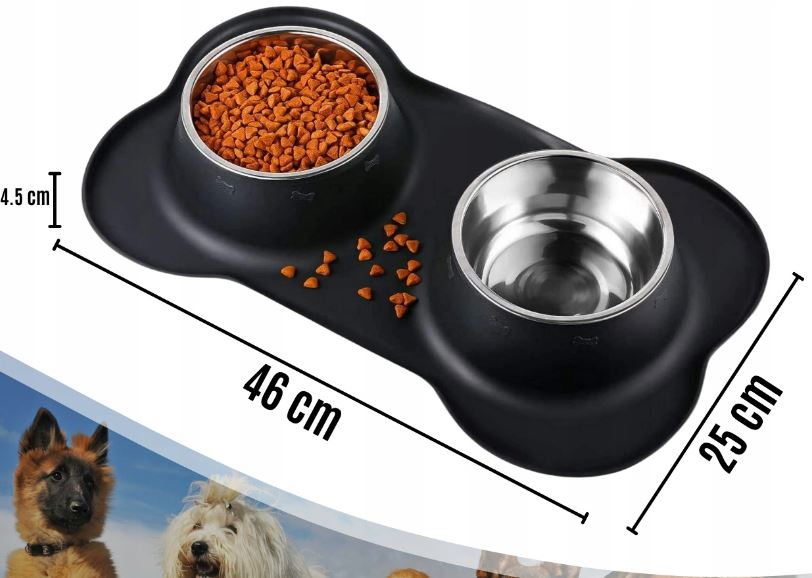 МИСКА ДВОЙНАЯ ДЛЯ СОБАК И КОШКИ, НЕСКОЛЬЗЯЩАЯ + ПОДКЛАДКА ДЛЯ МИСКИ 2x450 мл