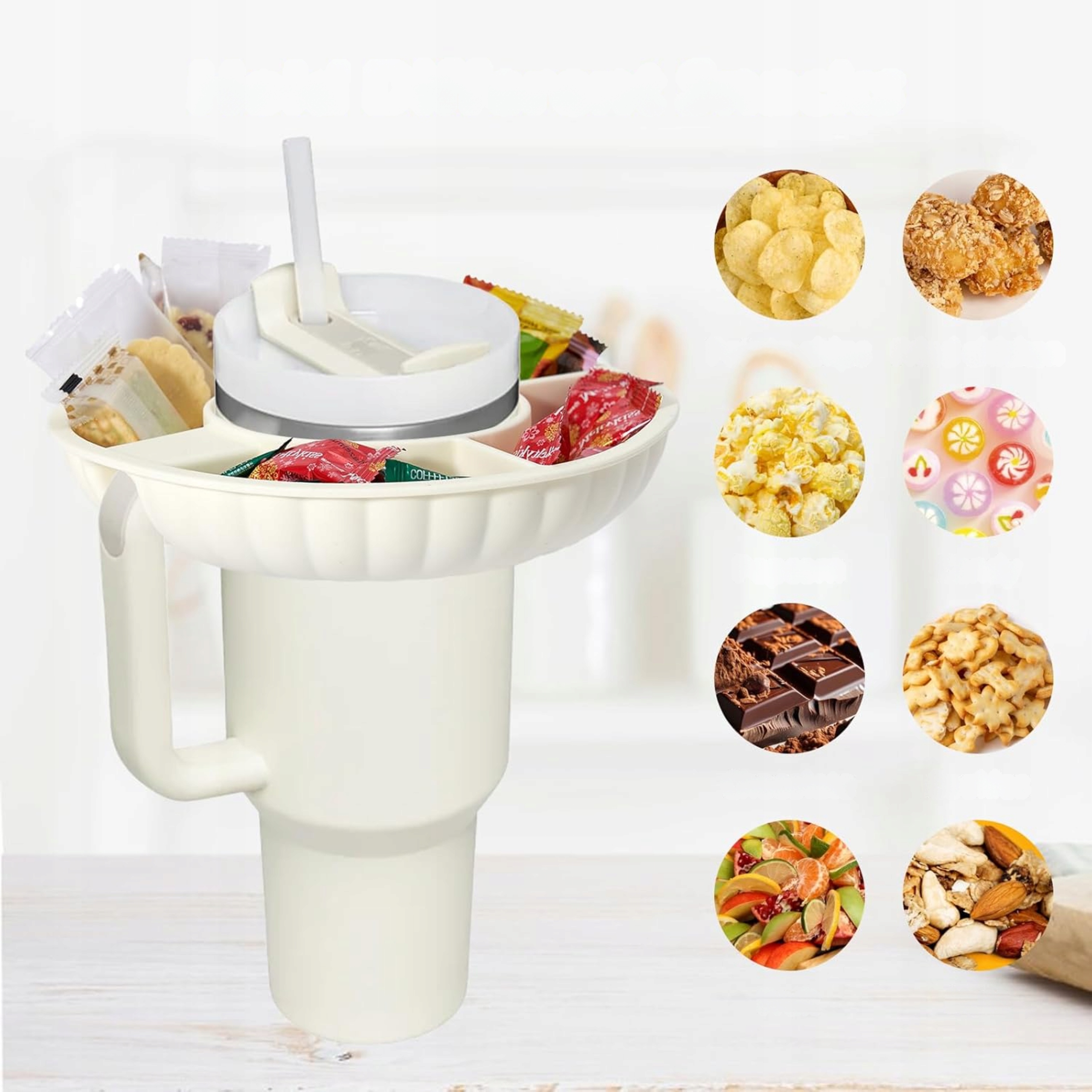 Чаша была разделена на четыре секции, так что вы можете взять различные любимые закуски - от чипсов и попкорна, орехов, орехов, орехов или попкорн, орехов.