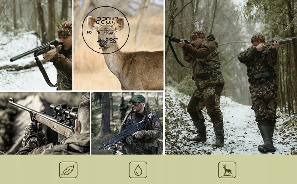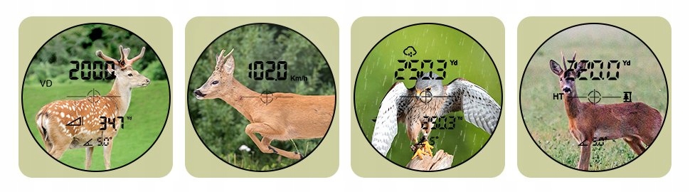 - Охоты/стрельбы из лука - предназначен для охоты и стрельбы из лука, показывает горизонтальное расстояние и расстояние с компенсацией угла, вертикальное расстояние по прямой. скорость линии и цели с расстояния не менее 1 метра, 6-кратное увеличение, угол обзора 7 градусов, дальность действия до 800 м и диапазон измерения скорости: 18 ~ 300 км/ч.