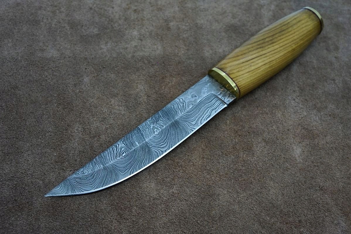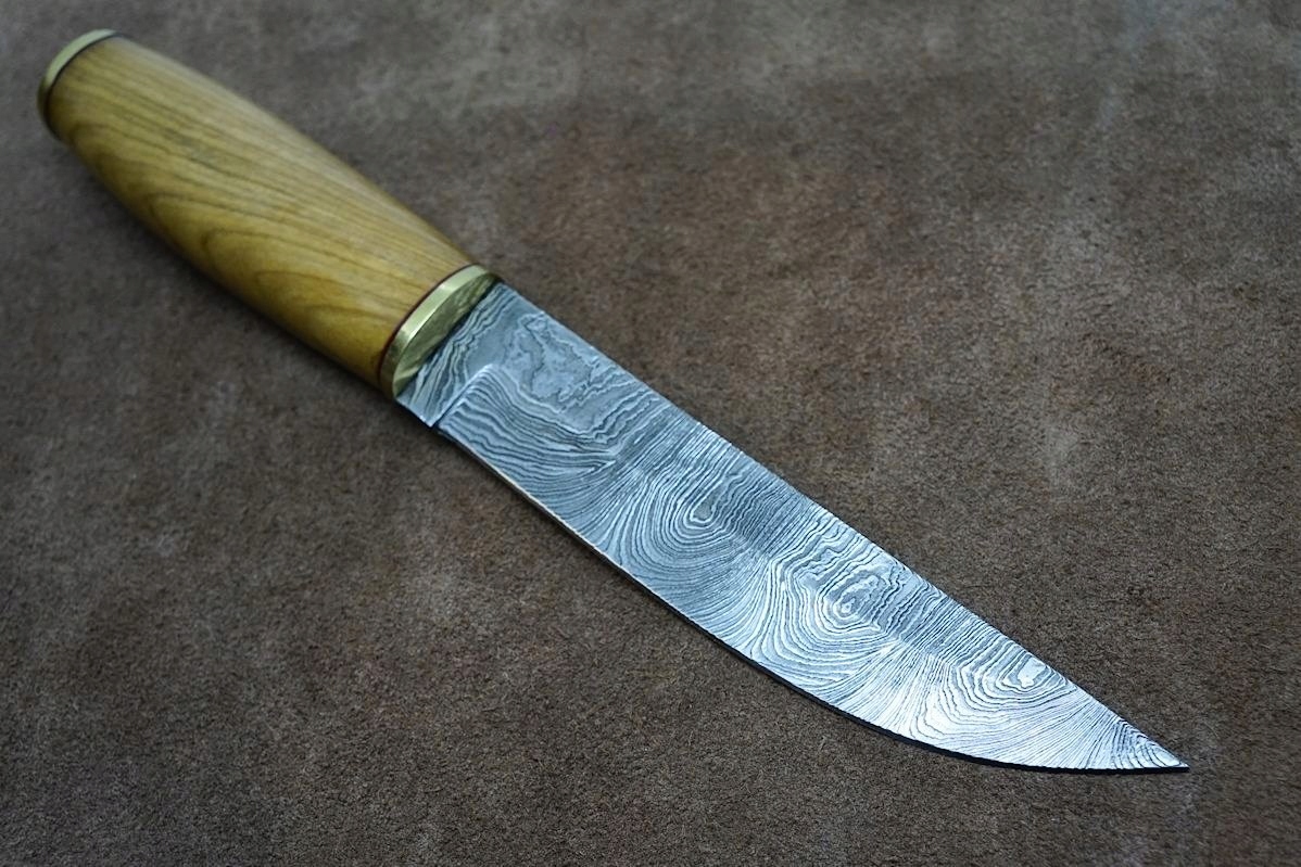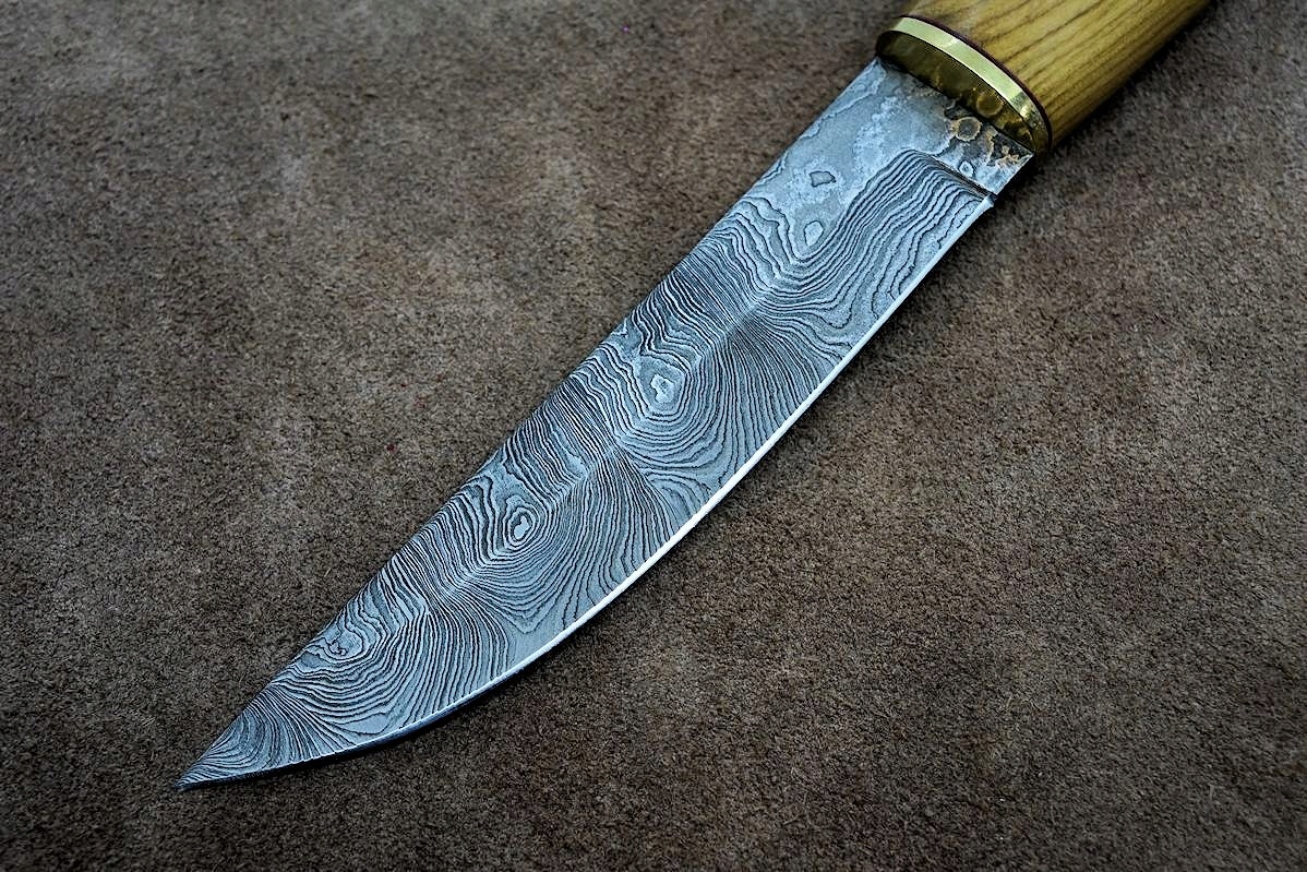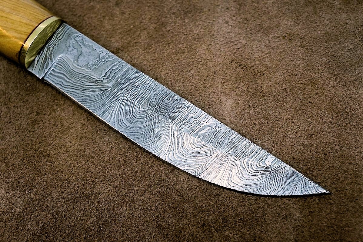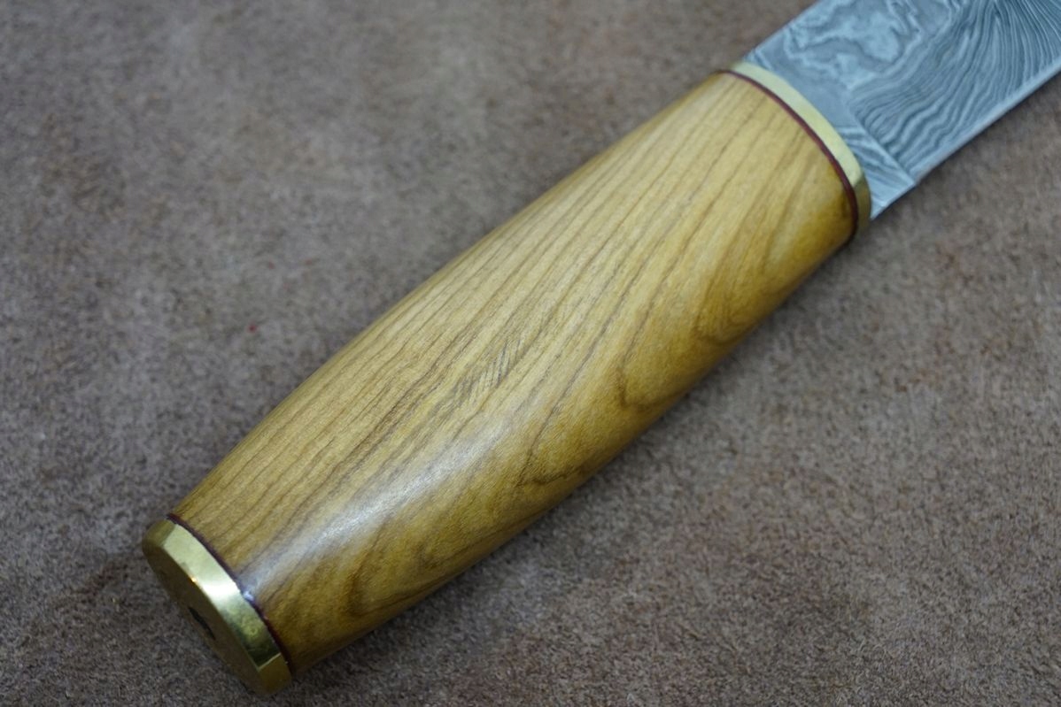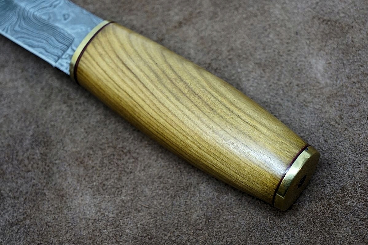 Рукоять: экзотическая оливковая древесина, латунная отделка рукоятки по месту. где начинается клинок.