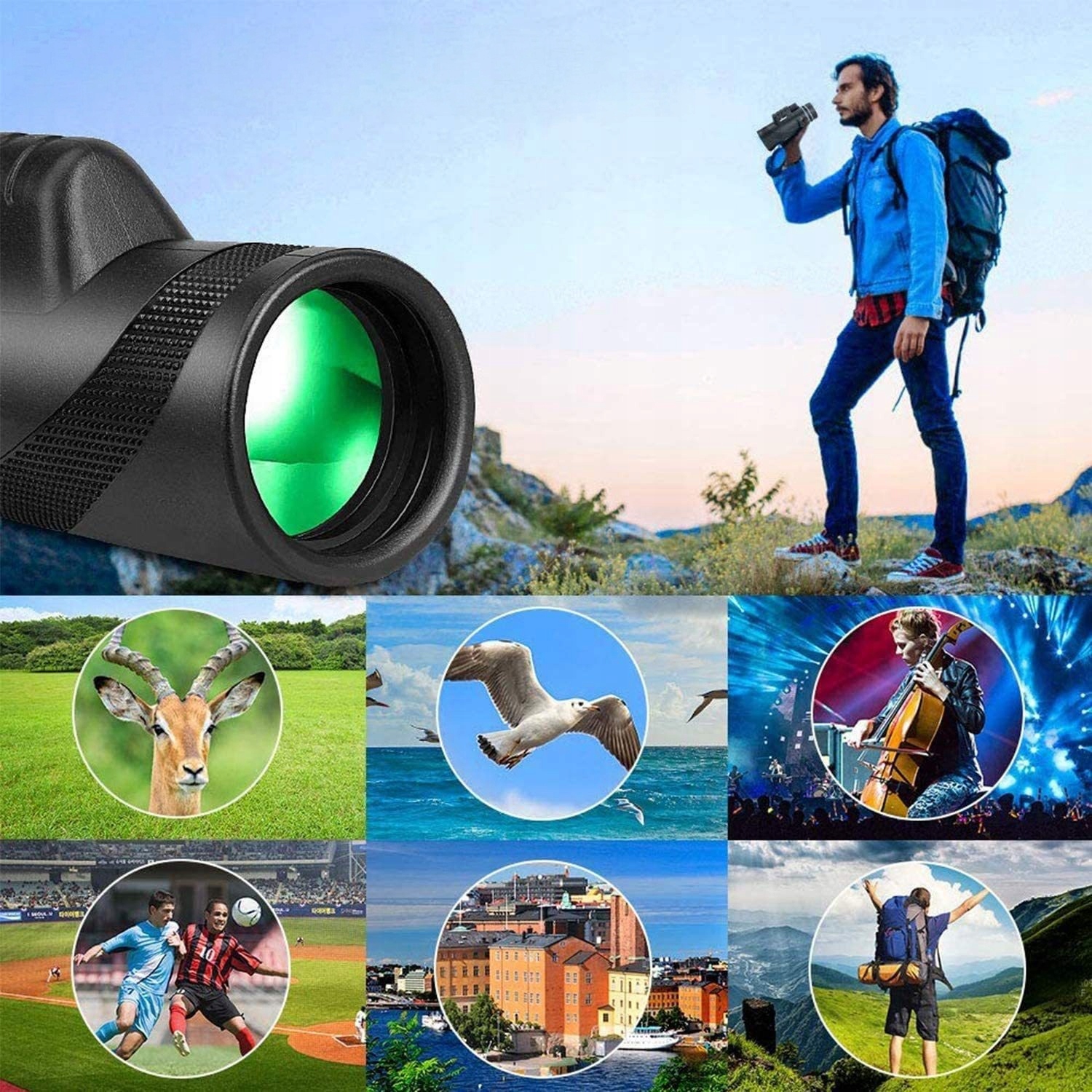 Вы любите пешие прогулки по дикой природе, но не можете ясно видеть отдаленные дорожные знаки? Во время похода вы хотите наблюдать за звездами, но страдаете от размытости изображения? При наблюдении за птицами или восхождении не является ли оборудование слишком тяжелым, чтобы его можно было держать, или все становится «черным» при слабом освещении? Не позволяйте низкокачественному телескопу испортить вам удовольствие от отдыха на природе! Сегодня мы рекомендуем по-настоящему понятный любителям активного отдыха монокулярный телескоп большого диаметра 80x100, с высоким увеличением и высоким качеством, для использования с мобильным телефоном на открытом воздухе, сочетающий в себе кристальный обзор, ночное видение при слабом освещении, портативность, водонепроницаемость и многие другие преимущества. Отправляетесь ли вы в поход, в поход, наблюдаете за птицами или звездами, вы сможете четко запечатлеть каждый блестящий момент.