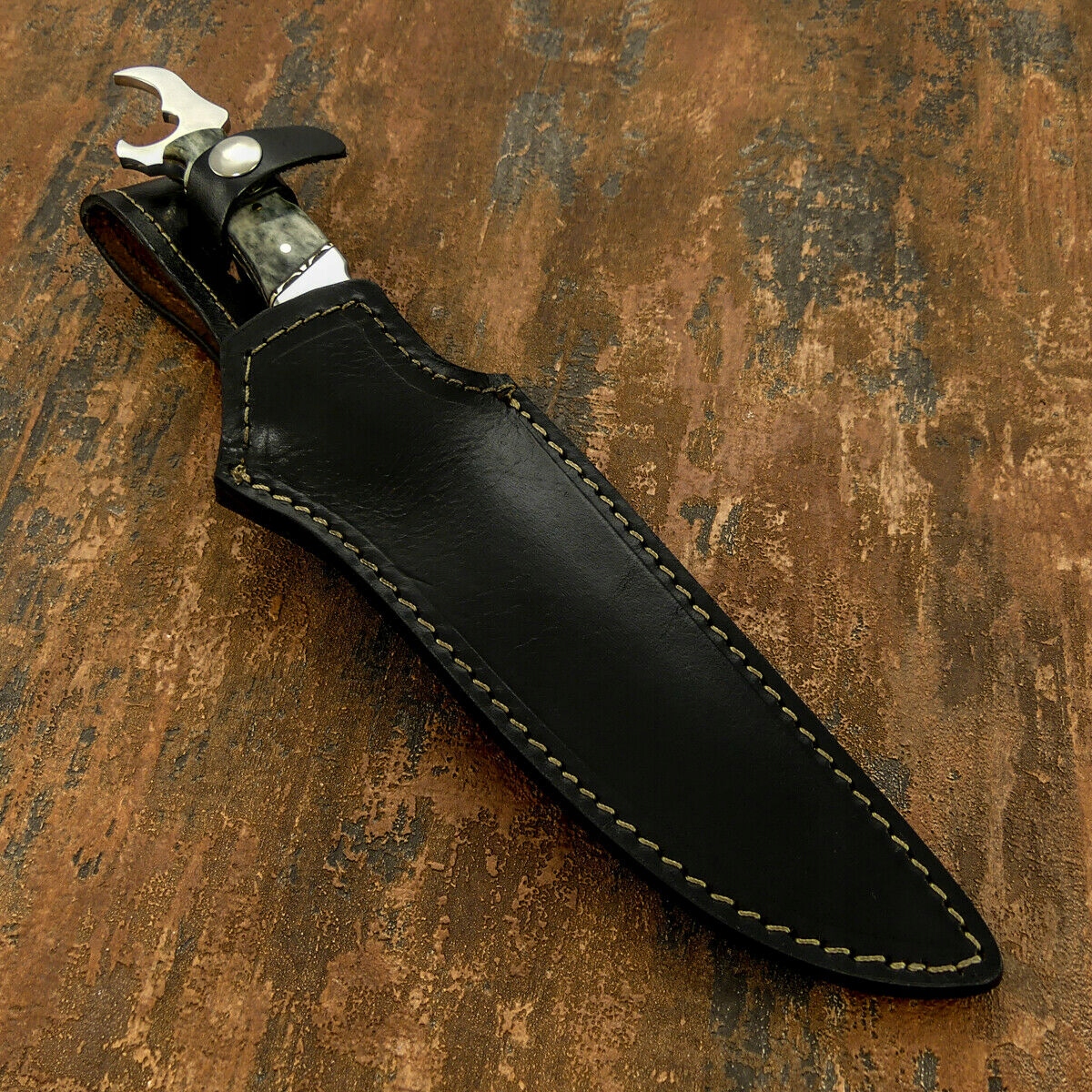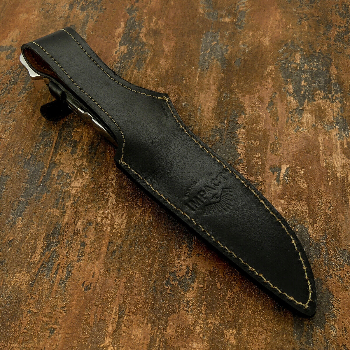 Ножны: из толстой сшитой телячьей кожи, подписаны логотипом бренда Impact.