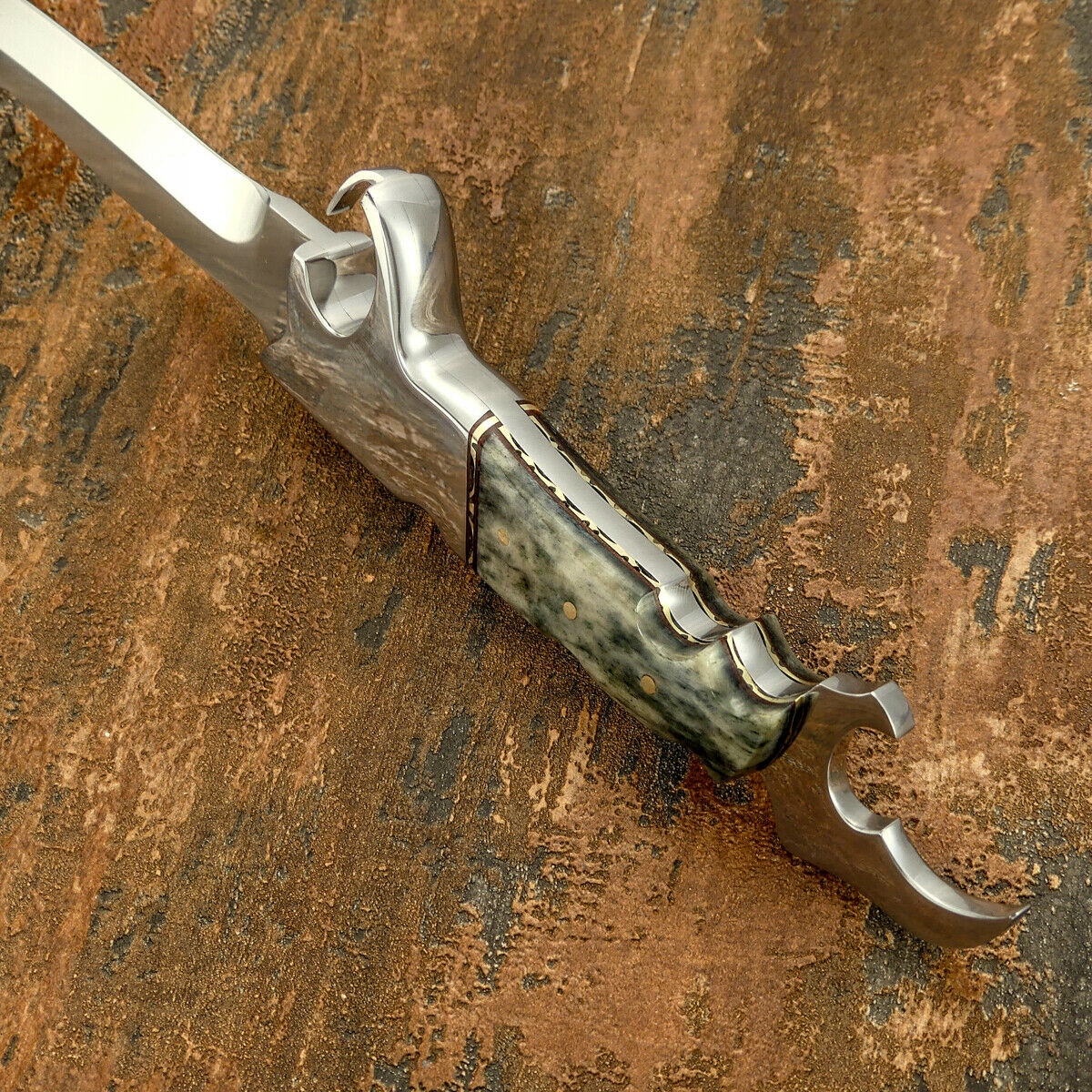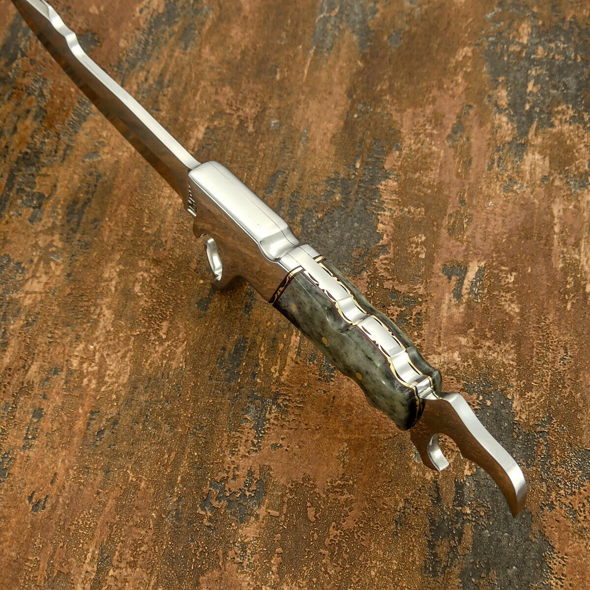 Рукоятка: твердая, как камень, эпоксидная смола, латунные прокладки,