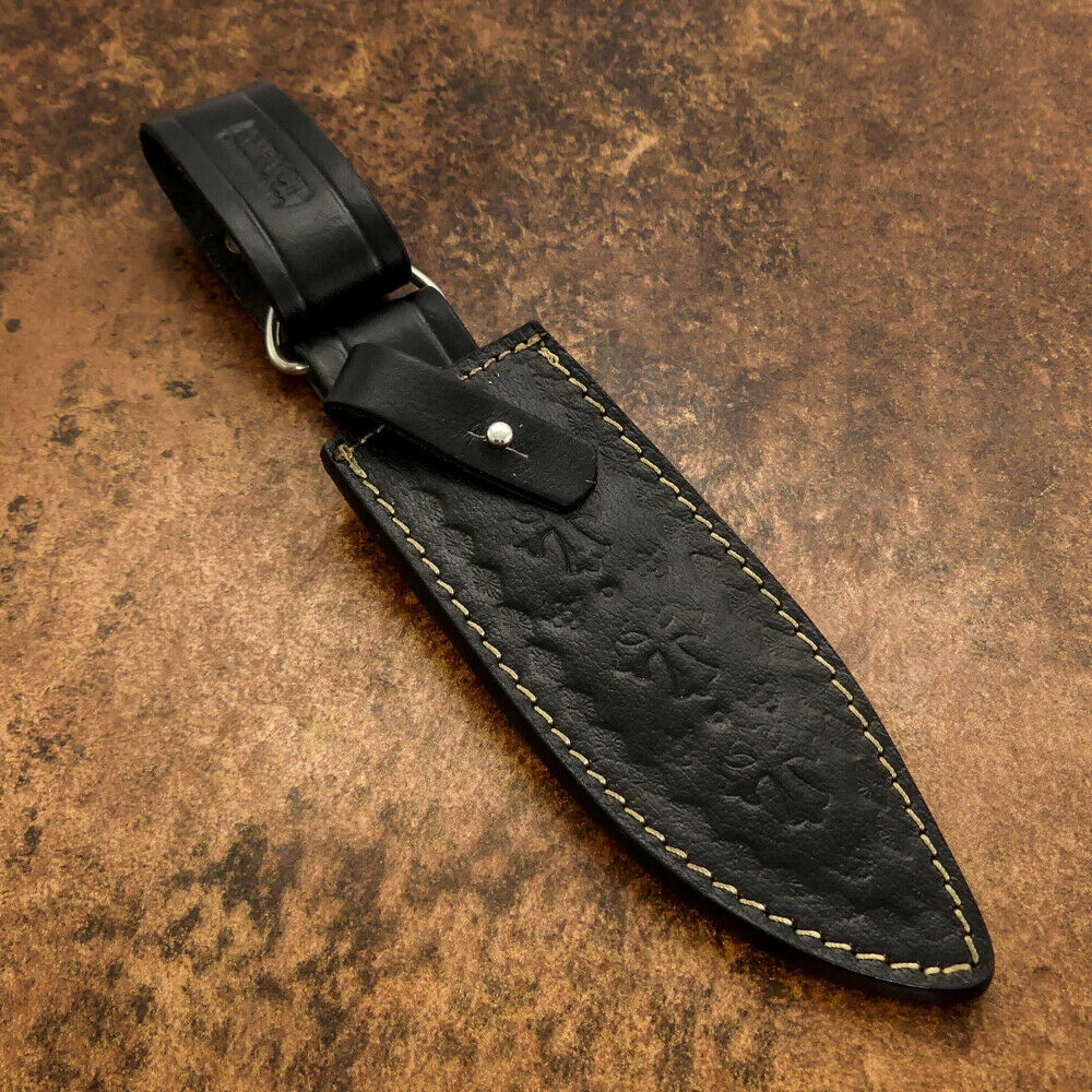 Ножны: из пошитой толстой телячьей кожи, цельные, красиво декорированные, подписаны логотипом бренда Impact,