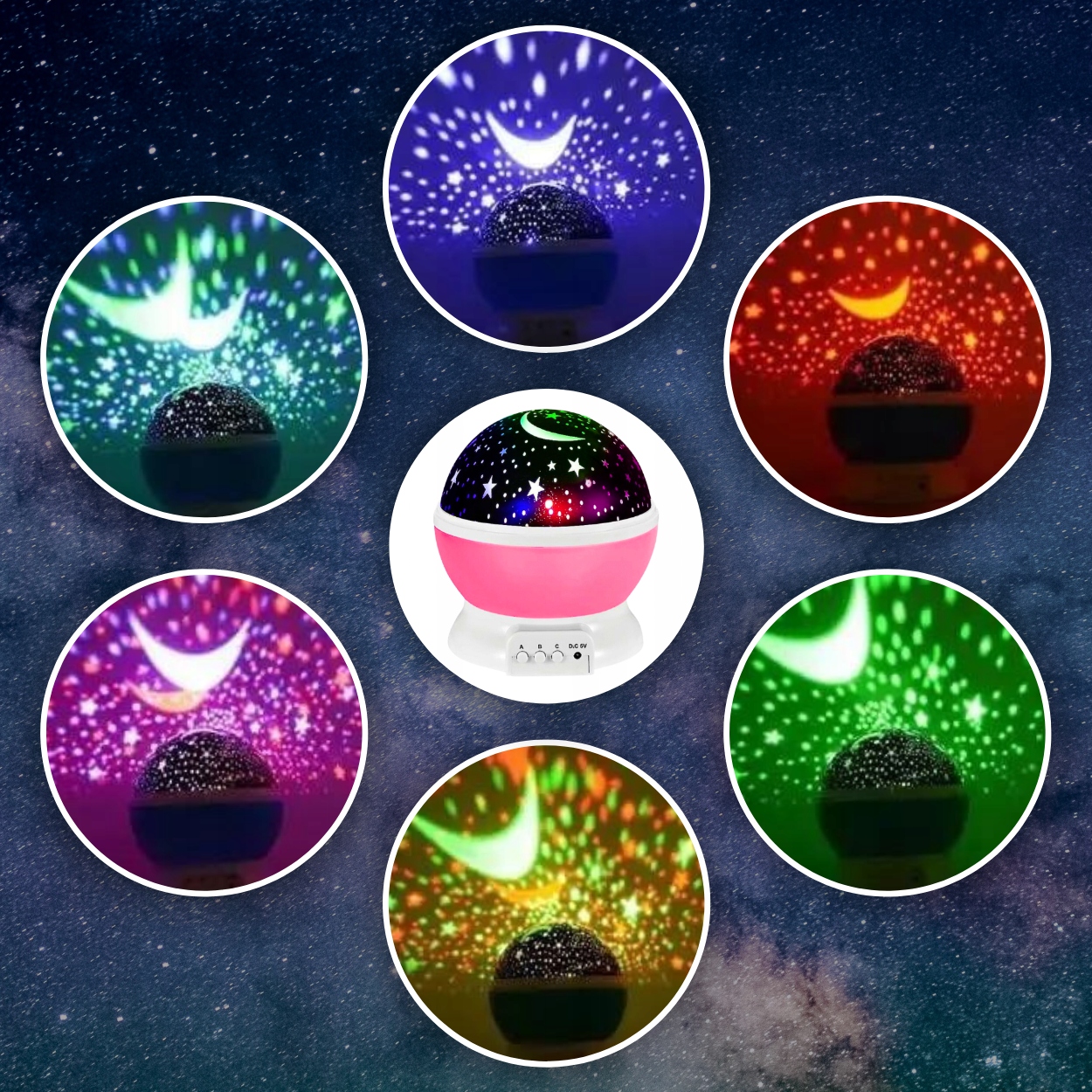 НАСТОЛЬНАЯ ЛАМПА-ПРОЕКТОР ЗВЕЗДЫ МНОГОФУНКЦИОНАЛЬНАЯ НОЧНАЯ ЛАМПА 360 РОЗОВАЯ