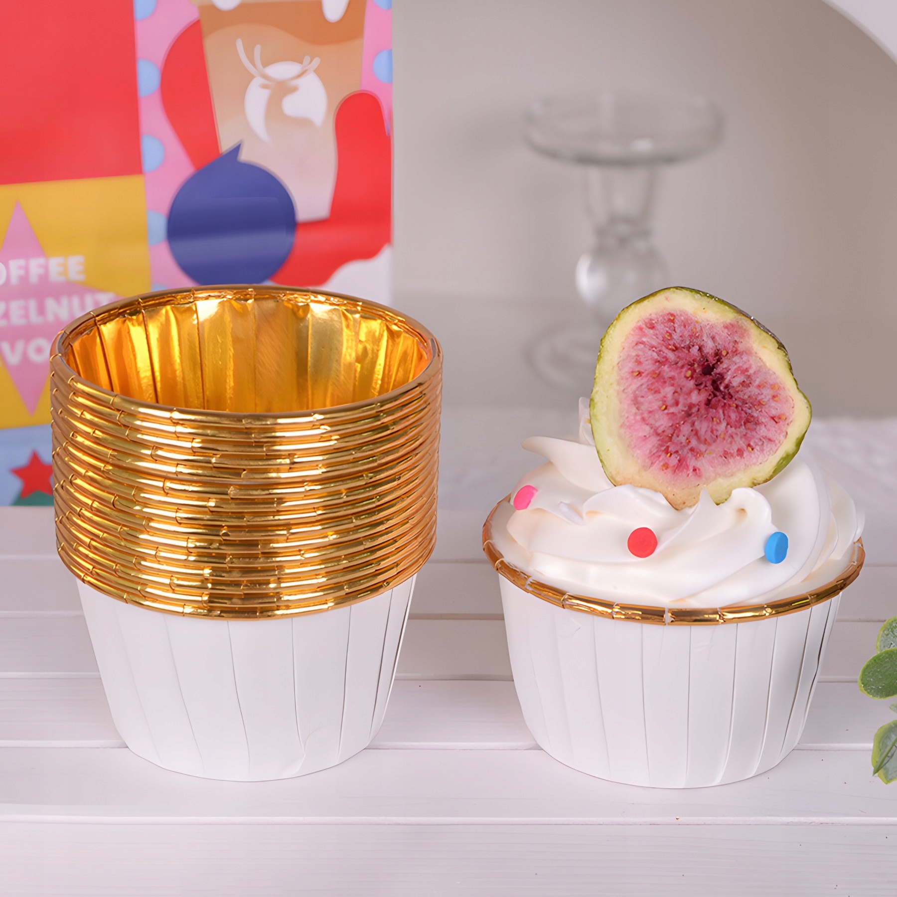 Формы идеально подходят для выпечки кексов или маффинов, а также для хранения печенья, сладостей, десертов, печенья, фруктов и т. д. Кексы, выпеченные в золотых формах, идеальны в качестве украшения на свадьбах, юбилеях, днях рождения и детских праздниках. Эти формы практичны и эстетичны, придают очарование любому мероприятию, предлагая при этом разнообразные возможности их использования.