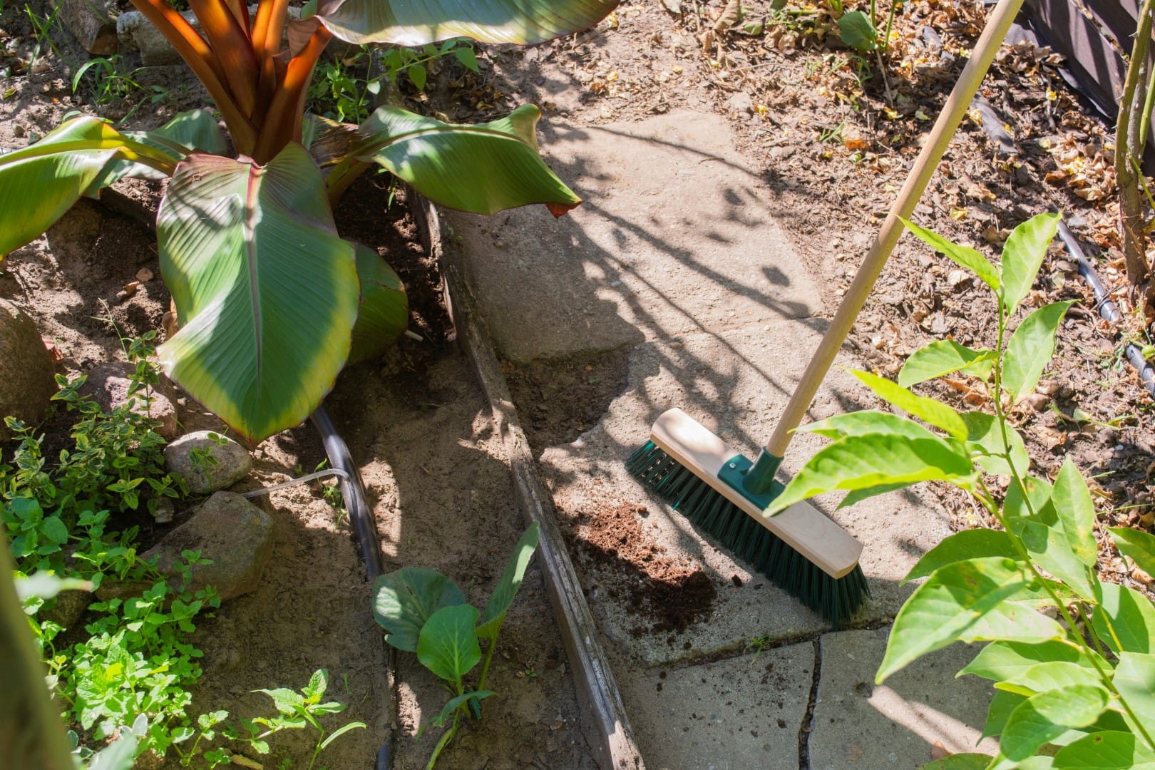 - Метла идеально подходит для подметания пространства вокруг дома.