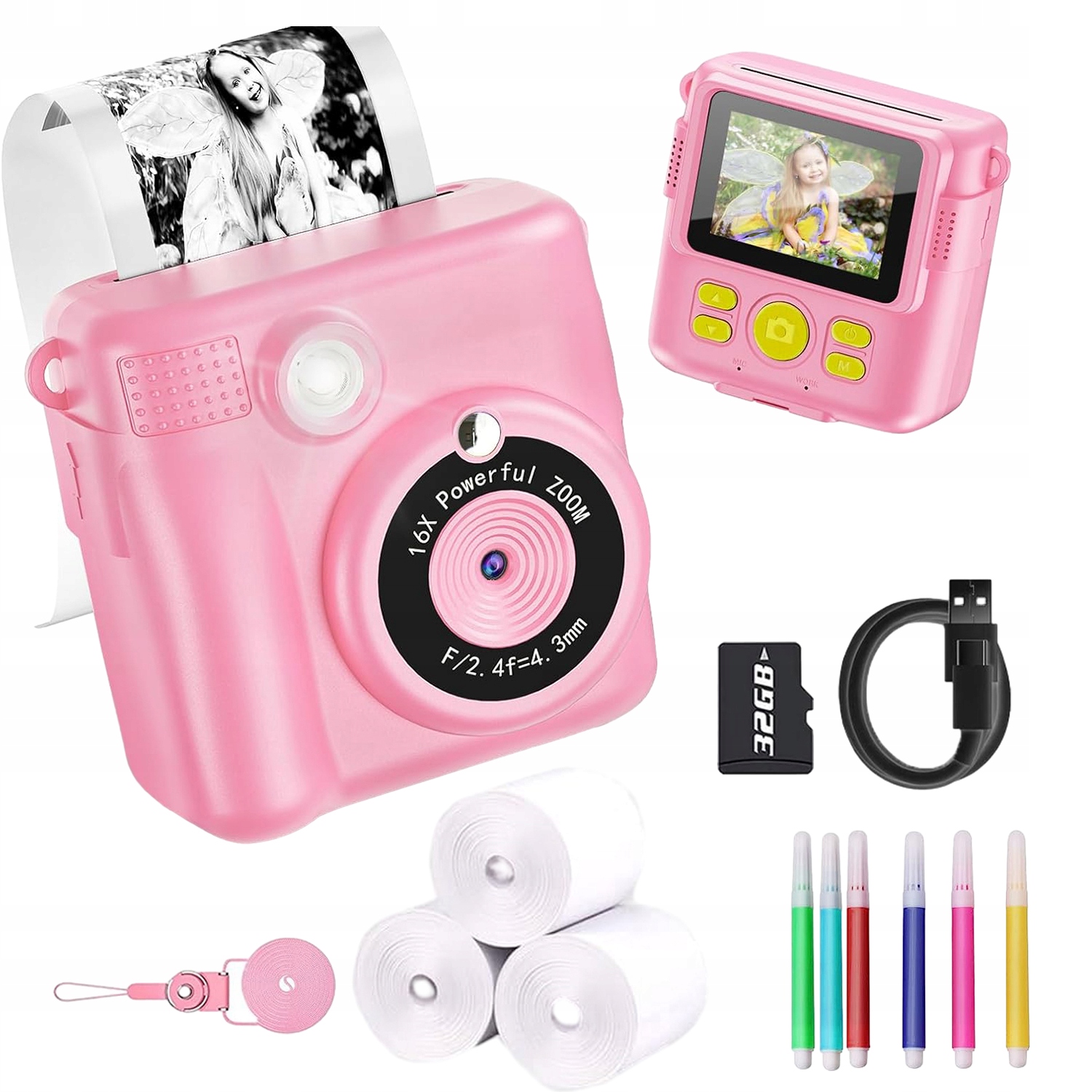 -ДЕТСКАЯ КАМЕРА С МГНОВЕННЫМ ЭКРАНОМ, ДЕТСКАЯ ЦИФРОВАЯ КАМЕРА С БУМАГОЙ ДЛЯ ПЕЧАТИ И TF-КАРТА 32 ГБ, МГНОВЕННАЯ КАМЕРА 1080P, ДЛЯ ДЕТЕЙ, С ЦВЕТНЫМИ РУЧКАМИ,