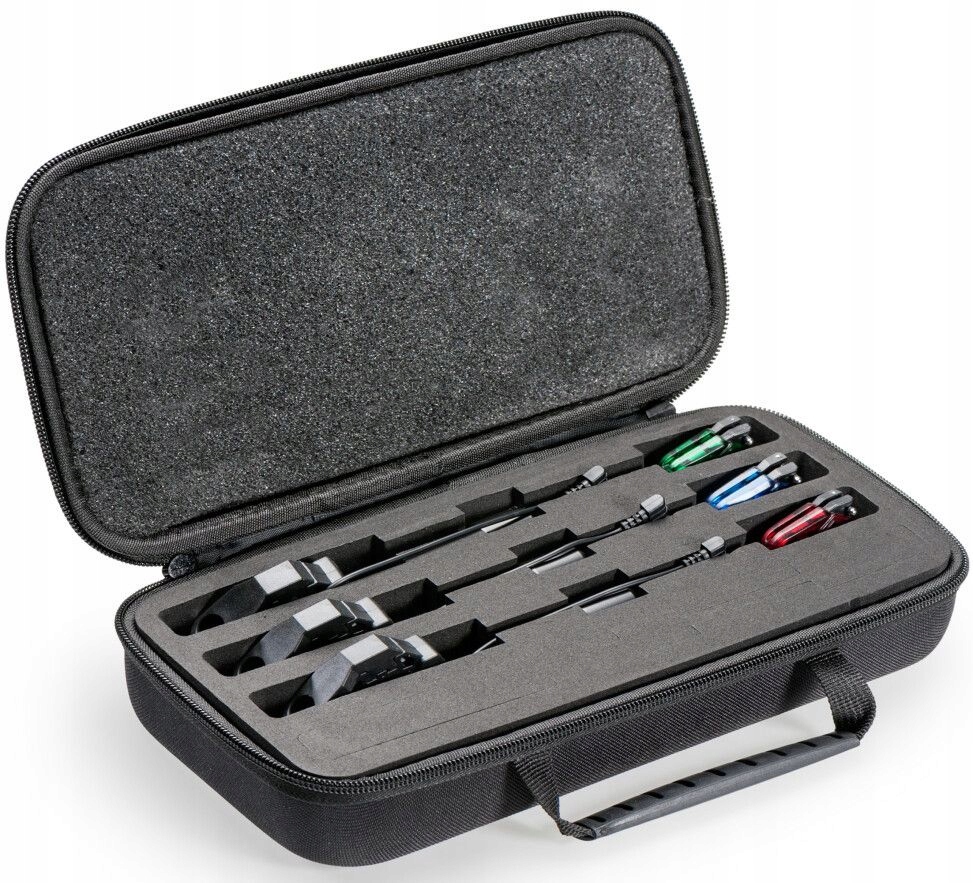 В комплект входят три свингера разных цветов – красного, зеленого и синего. Благодаря этому вы сможете легко различать отдельные удилища, что облегчает управление вашей рыболовной станцией. Все упаковано в прочный, жесткий транспортировочный кейс.