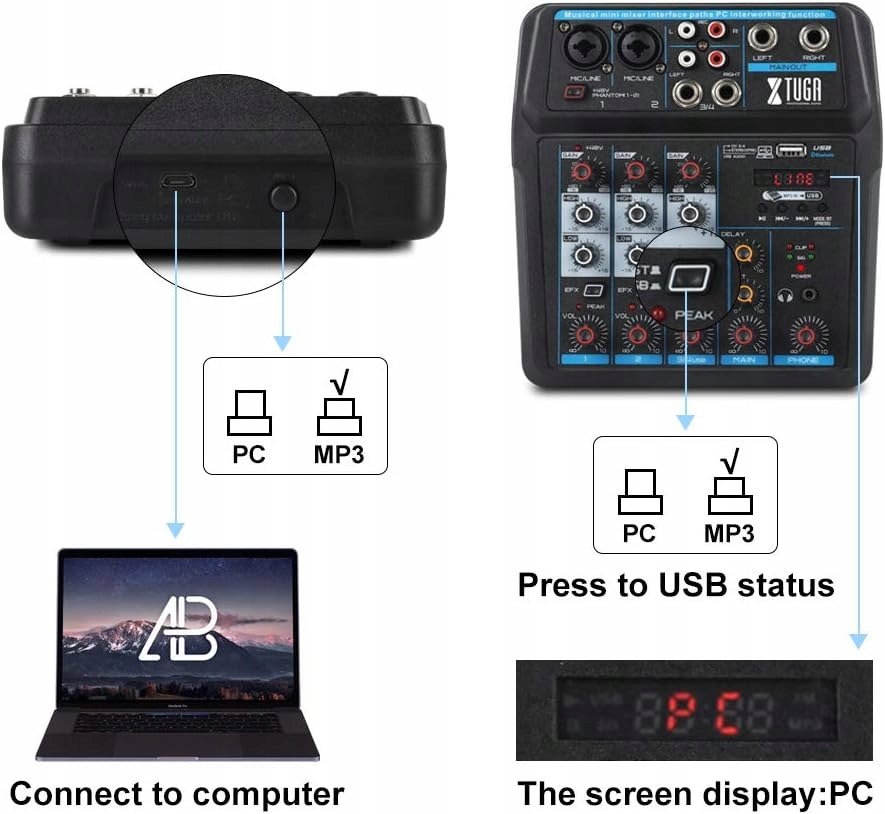 смесь 4 Canal mini bluetooth usb xtuga am4