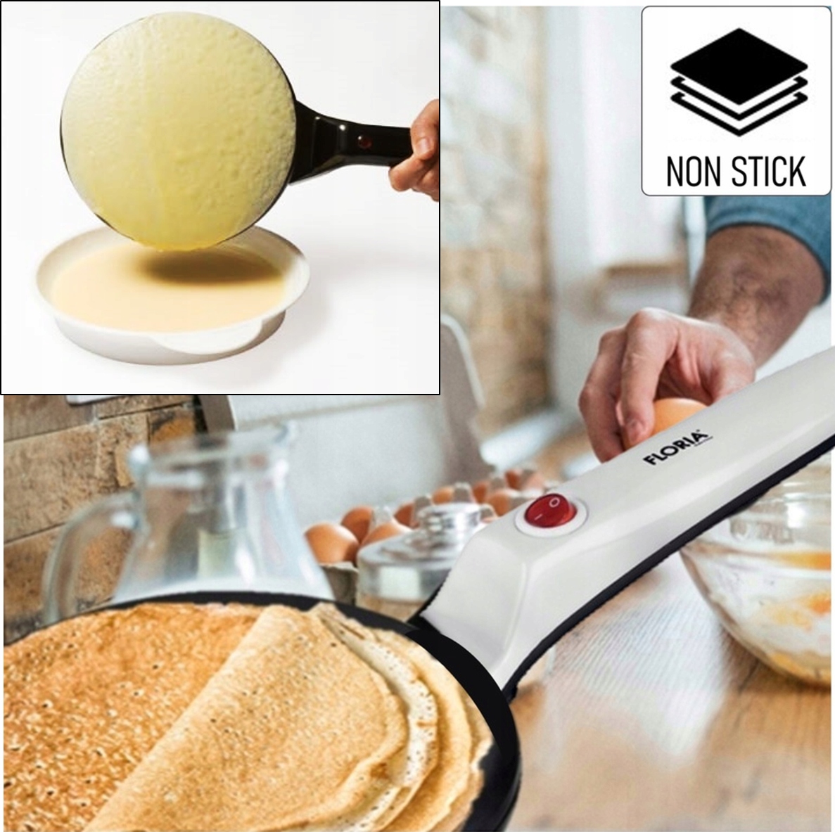 ПЛОСКАЯ НАГРЕВАТЕЛЬНАЯ ПЛИТА С АНТИПРИГАРНЫМ ПОКРЫТИЕМ гарантирует быстрое приготовление любимого блюда, а также отличное ЛЕГКО ЧИСТИТЬ блинница после выпечки. НЕ ПРИГЛАЖИВАЮЩИЙ