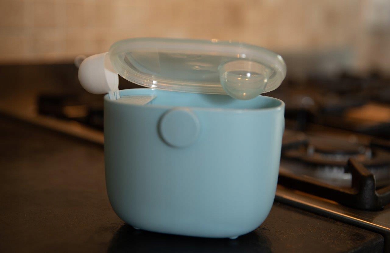 Он имеет уникальную форму, а весь дизайн и цвета сочетаются с другими аксессуарами линии для детского питания. Контейнер емкостью 500 мл имеет двойную герметичную крышку. Оснащен удобной ложкой/молочником. Это гарантирует высочайшую гигиену, а герметичность крышки предотвратит высыпание влаги или сухого молока. Кроме того, ложка помещается в отдельный отсек. Контейнер стерилизуем и изготовлен из полипропилена. Он имеет удобную силиконовую ручку для переноски, а также может использоваться для хранения различных закусок и лакомств.