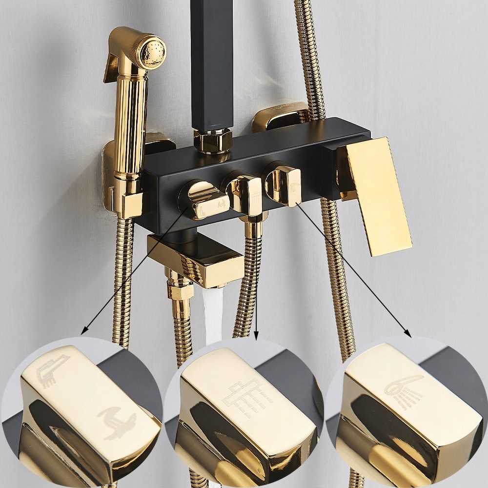 МНОГОФУНКЦІОНАЛЬНИЙ ЗМІШУВАЧ ДЛЯ ДУШУ ЧОРНИЙ І ЗОЛОТИЙ v2
