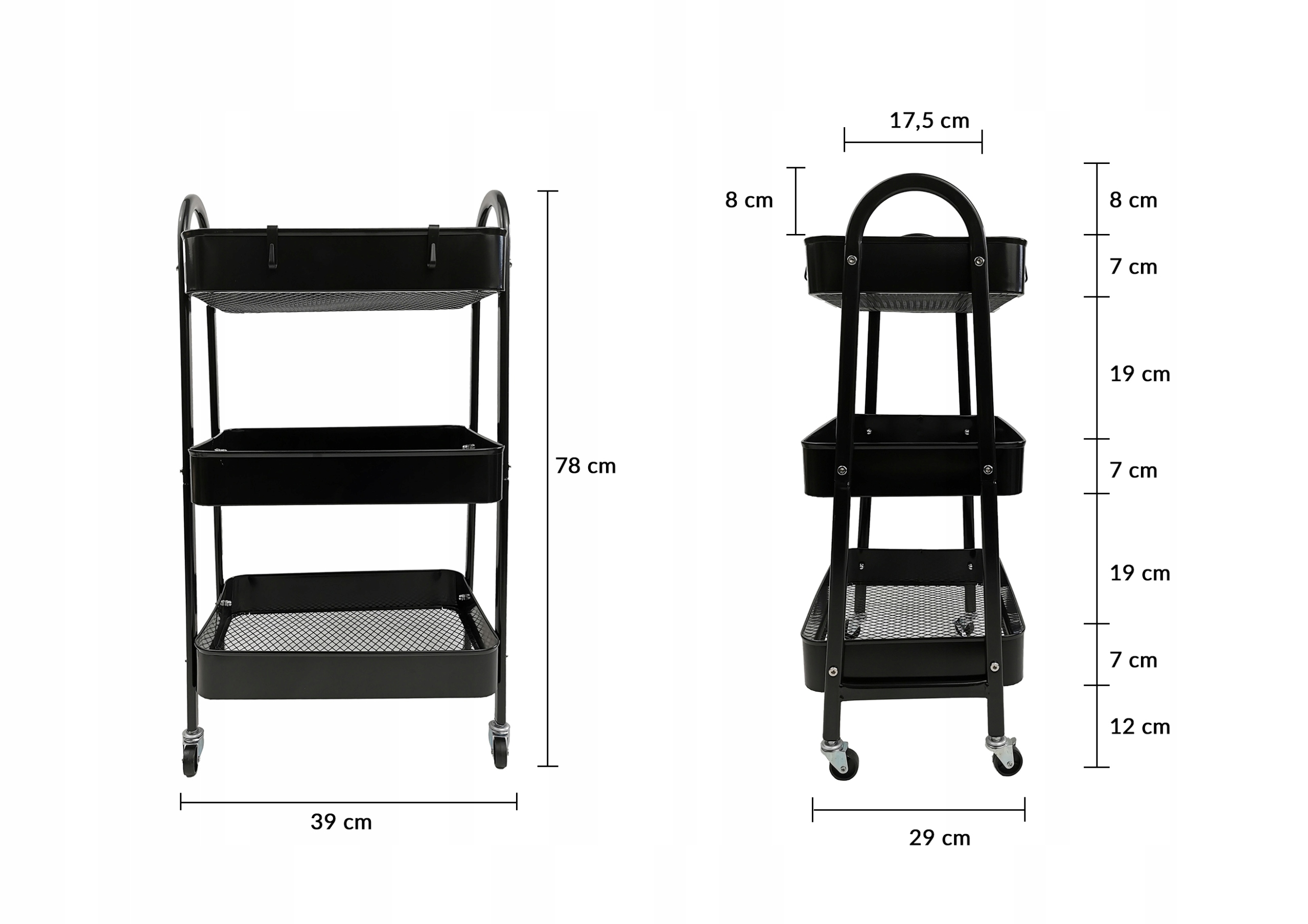 МОБІЛЬНА 3 ПОЛИЦЯ КУХОННА ТА ВАННА НА КОЛЕСАХ МЕТАЛЕВИЙ ВІЗОК 79 СМ