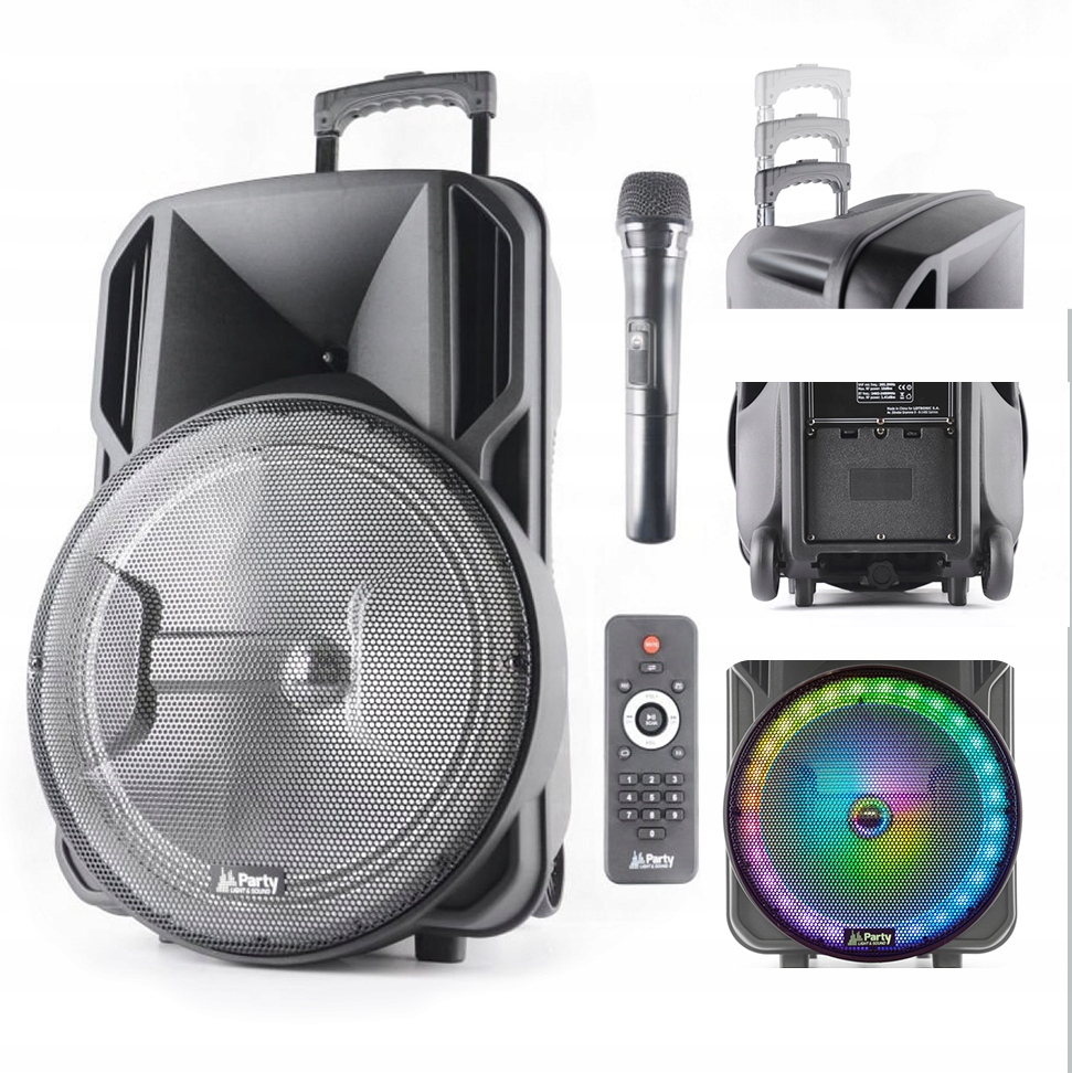 максимальной мощностью 1400Вт, имеющая встроенный аккумулятор, поэтому доступ к электрической розетке не требуется. Он оснащен светодиодными световыми эффектами, которые порадуют глаз каждого. Благодаря беспроводному микрофону он идеально подходит для выступлений и караоке. Устройство имеет Bluetooth, благодаря которому вы можете воспроизводить любимую музыку, а к разъему jack на задней панели колонки подключить гитару или другой инструмент.