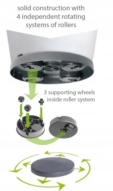 Круглая передвижная платформа с системой из 4-х независимых устойчивых роликов, вращающихся на 360 градусов. Предназначен для перемещения тяжелых, массивных цветочных горшков. Конструкция и крепление роликов делают их практически незаметными.