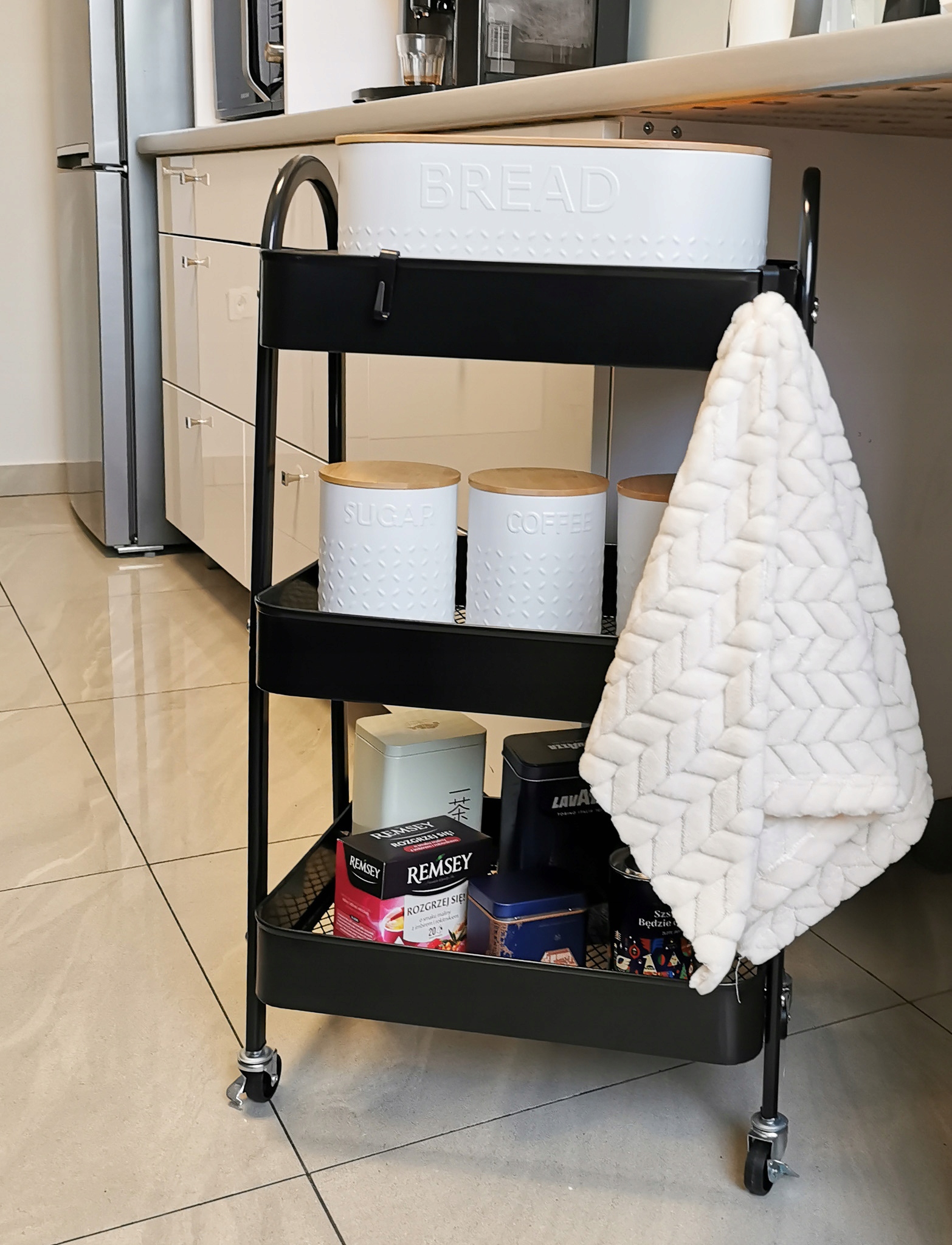 МОБІЛЬНА ПОЛИЦЯ 3 ПОЛИЦІ КУХОННИЙ СТІЛ НА КОЛЕСАХ ЧОРНИЙ ВОЗИК