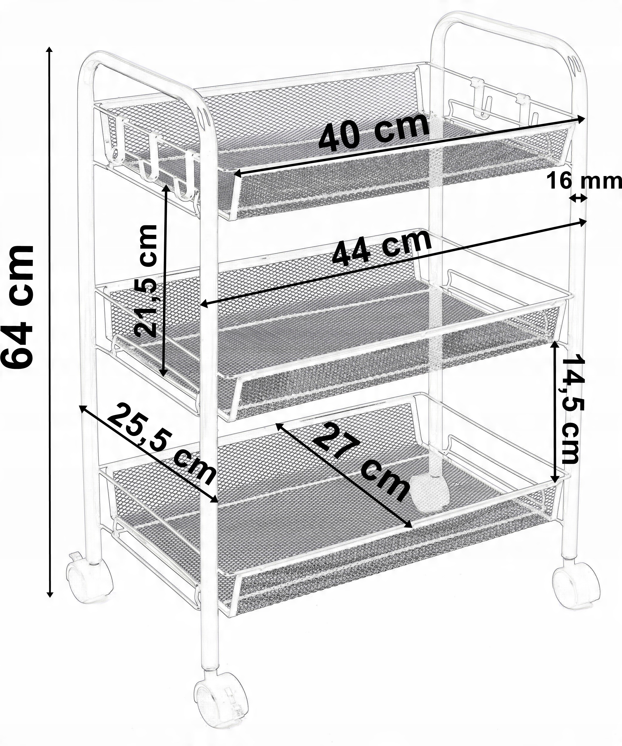 Halsen — универсальная полка, которая будет хорошо работать в любых условиях. Идеально подходит для кухни, ванной комнаты, гостиной или спальни. Его продуманный дизайн позволяет использовать узкие пространства и облегчает доступ к самым необходимым вещам. Модель оснащена 3 полками, на которых непременно поместится множество необходимых аксессуаров. У полки 4 колеса, в том числе 2 с замками с тормозом. В комплект входят 5 крючков для подвешивания, например, кухонных полотенец. Их можно установить слева и справа на любом уровне по желанию. Halsen изготовлен из материалов высочайшего качества. Стальная конструкция с порошковым покрытием черного глянцевого цвета.