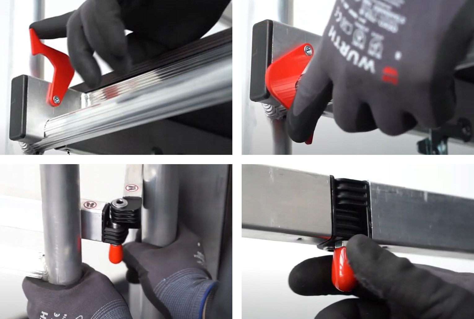 Легкая конструкция лесов и складной каркас элемента гарантирует быструю сборку и разборку без инструментов даже одним человеком. Профилированные и нескользящие перекладины боковых рам обеспечивают безопасный вход изнутри строительных лесов. Леса оснащены видимыми красными крючками на платформе и специальным механизмом складывания и раскладывания рамы, облегчающим быструю и легкую сборку и разборку.