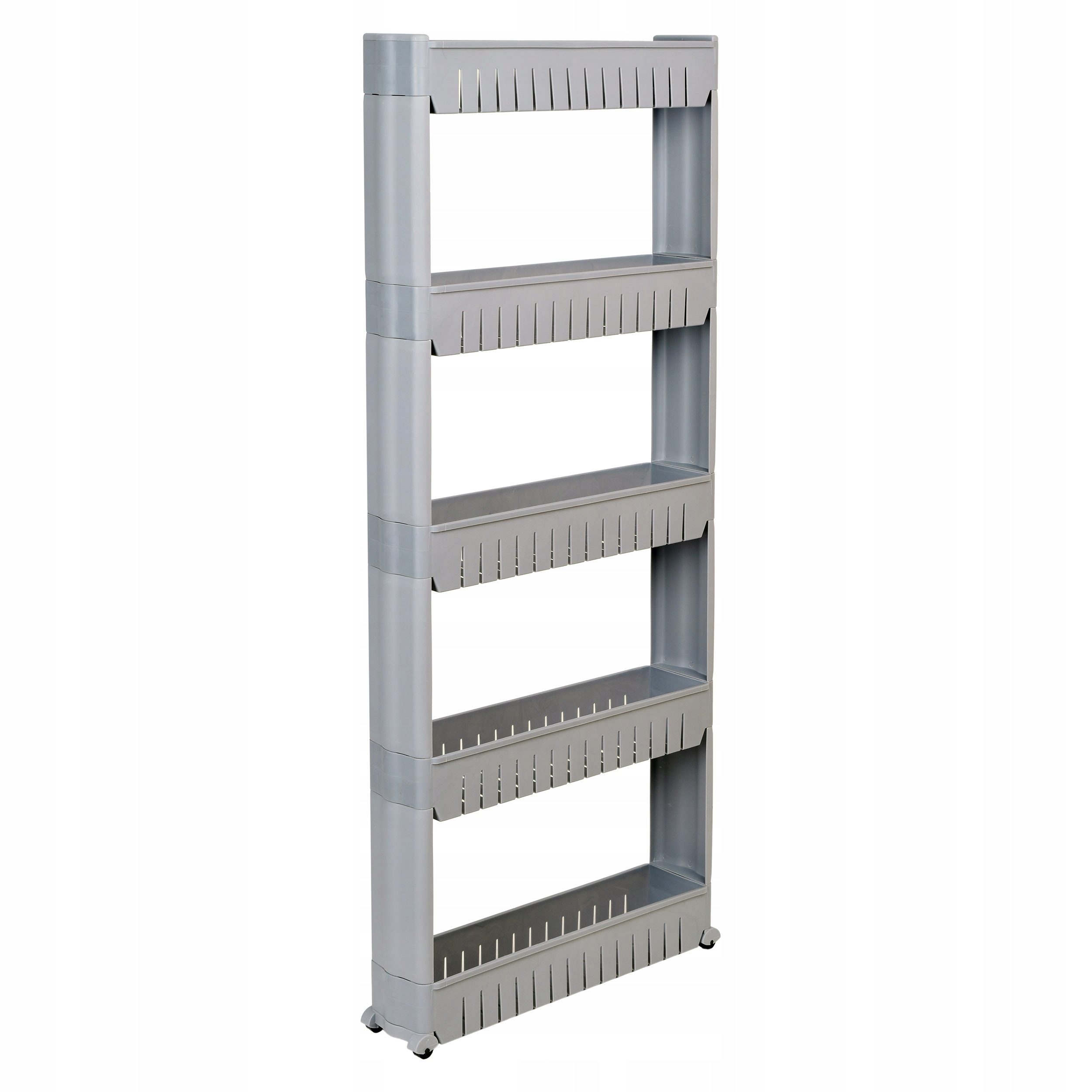Используя передвижную полку, вы можете выделить дополнительное пространство в узком месте, например, между холодильником и шкафом или стиральной машиной и стеной. Четыре просторные полки облегчат хранение множества вещей.