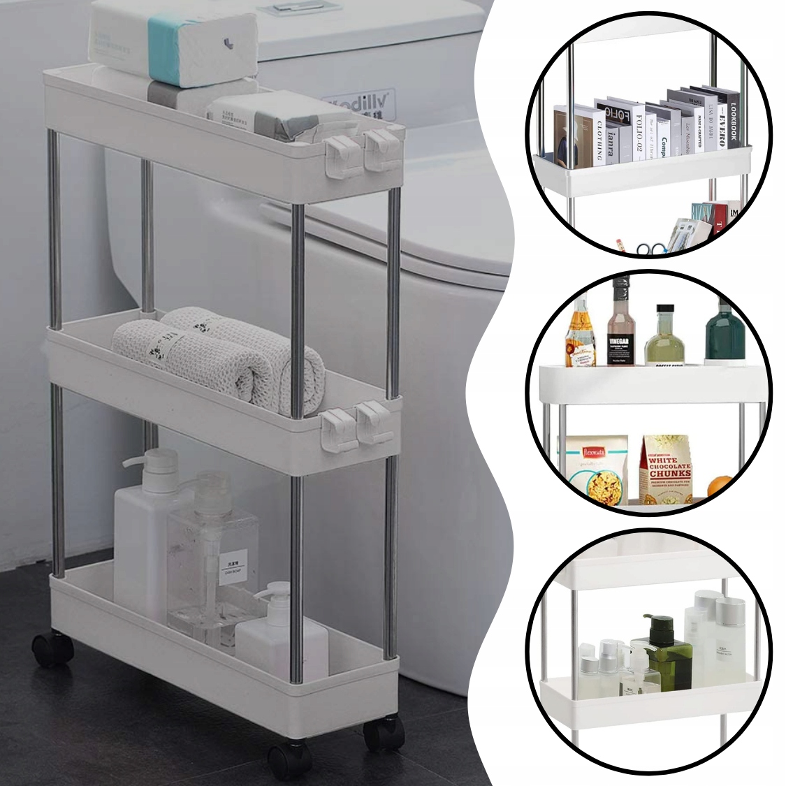 МОБІЛЬНА ШАФКА НА КОЛІСЦЯХ ПОЛИЧКА ПОЛИЦЯ ДЛЯ ВАННОЇ